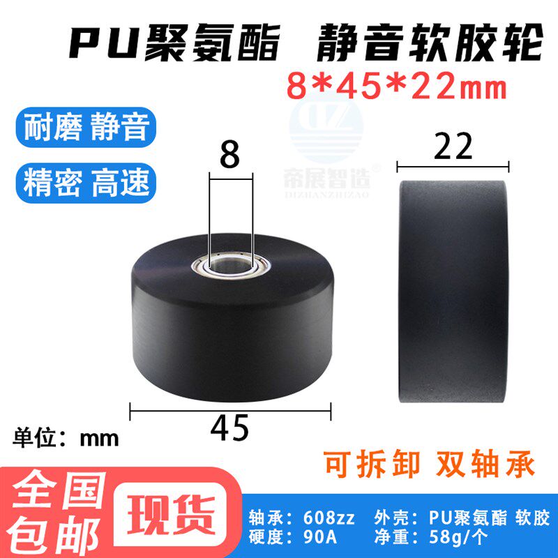 PU聚氨酯胶套包胶轴承滚轮橡胶轮耐磨静音划船机输送带指向轮压轮
