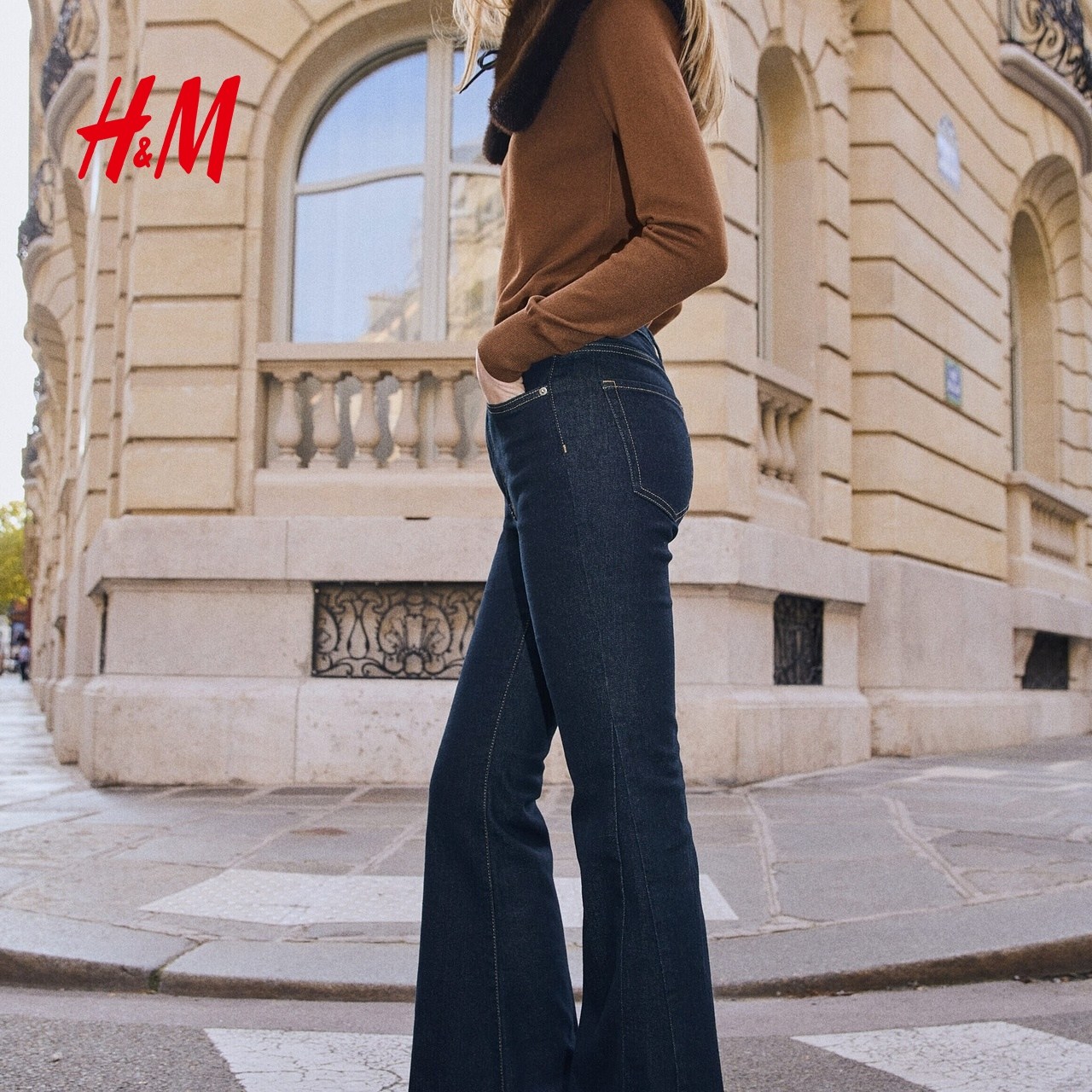 HM2025冬季新款女装高腰喇叭牛仔裤1310008