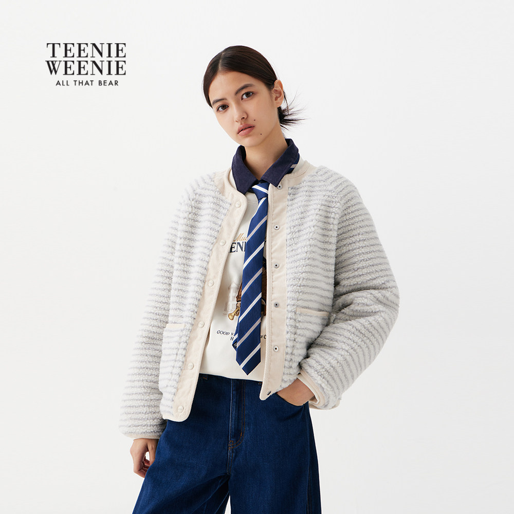 TeenieWeenie小熊女装外套2025年冬季新款清新少女风温暖圆领上衣