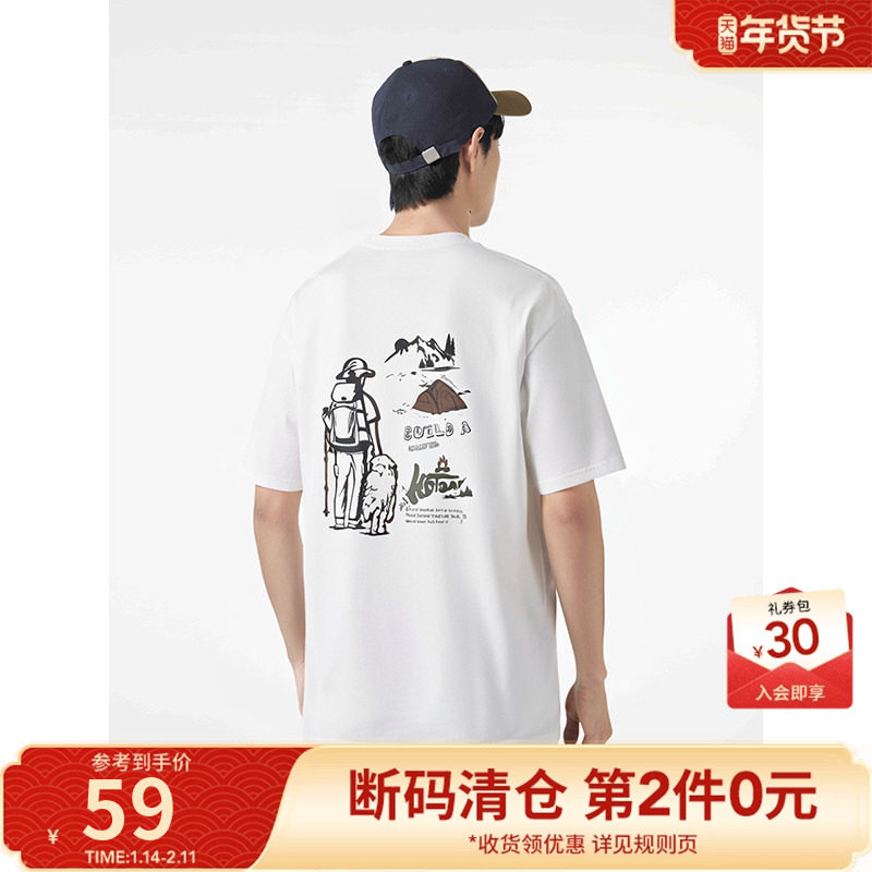 热风男士白色短袖T恤上衣2025年夏季新款字母户外圆领宽松内搭T恤