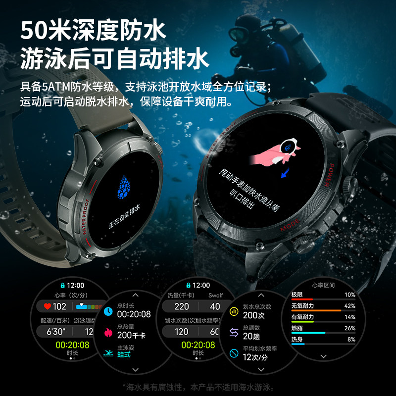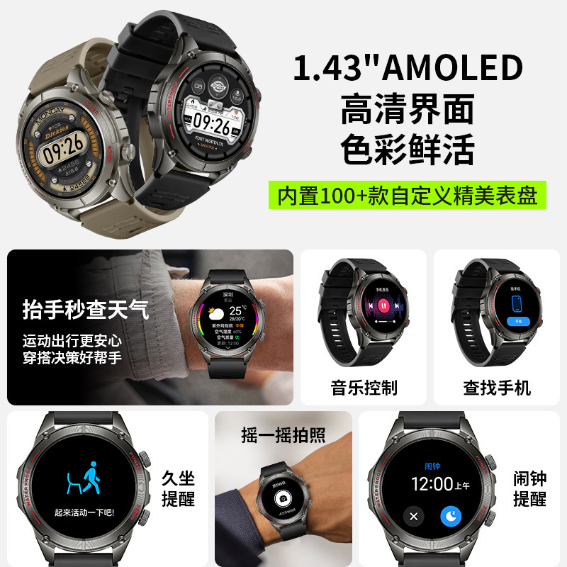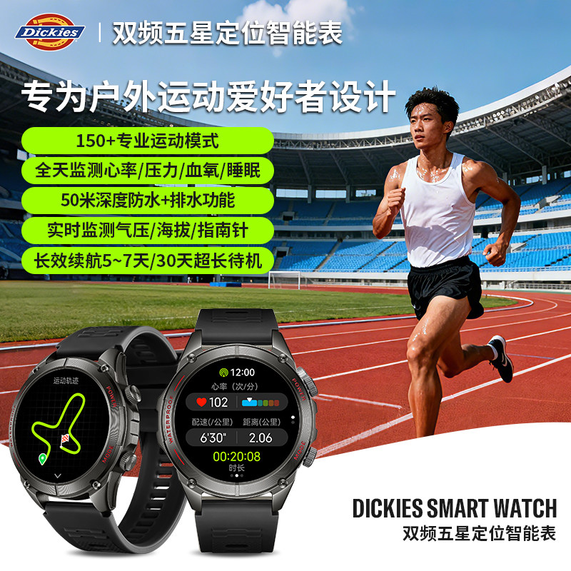 Dickies专业户外GPS智能运动手表男双频五星海拔气压心率监测游泳