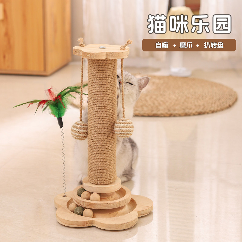猫抓板耐磨不掉屑立式剑麻猫咪爪柱小猫玩具逗猫棒自嗨解闷转盘球