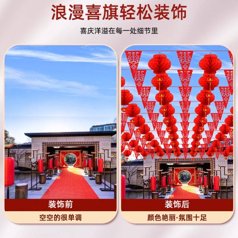 过年元旦结婚串旗彩旗灯笼婚礼婚庆室外装饰农村院子拉旗户外布置