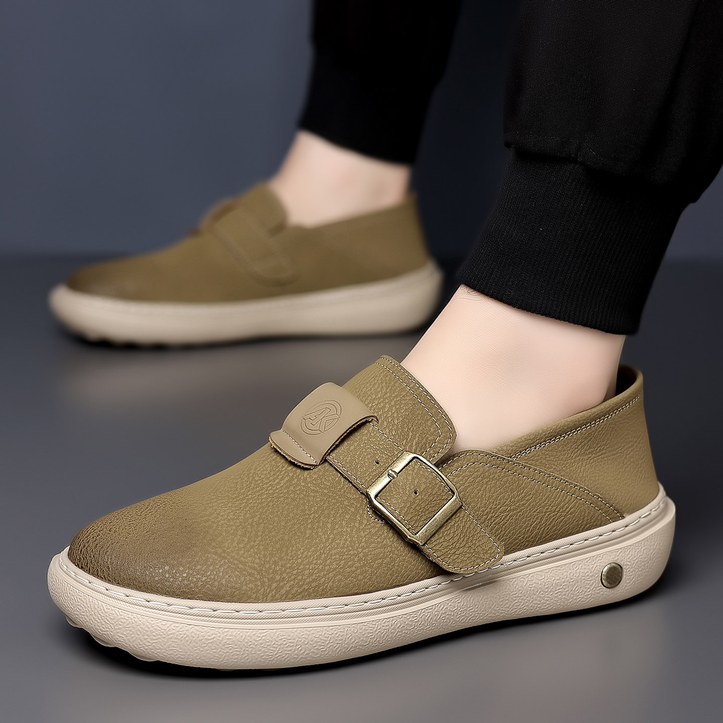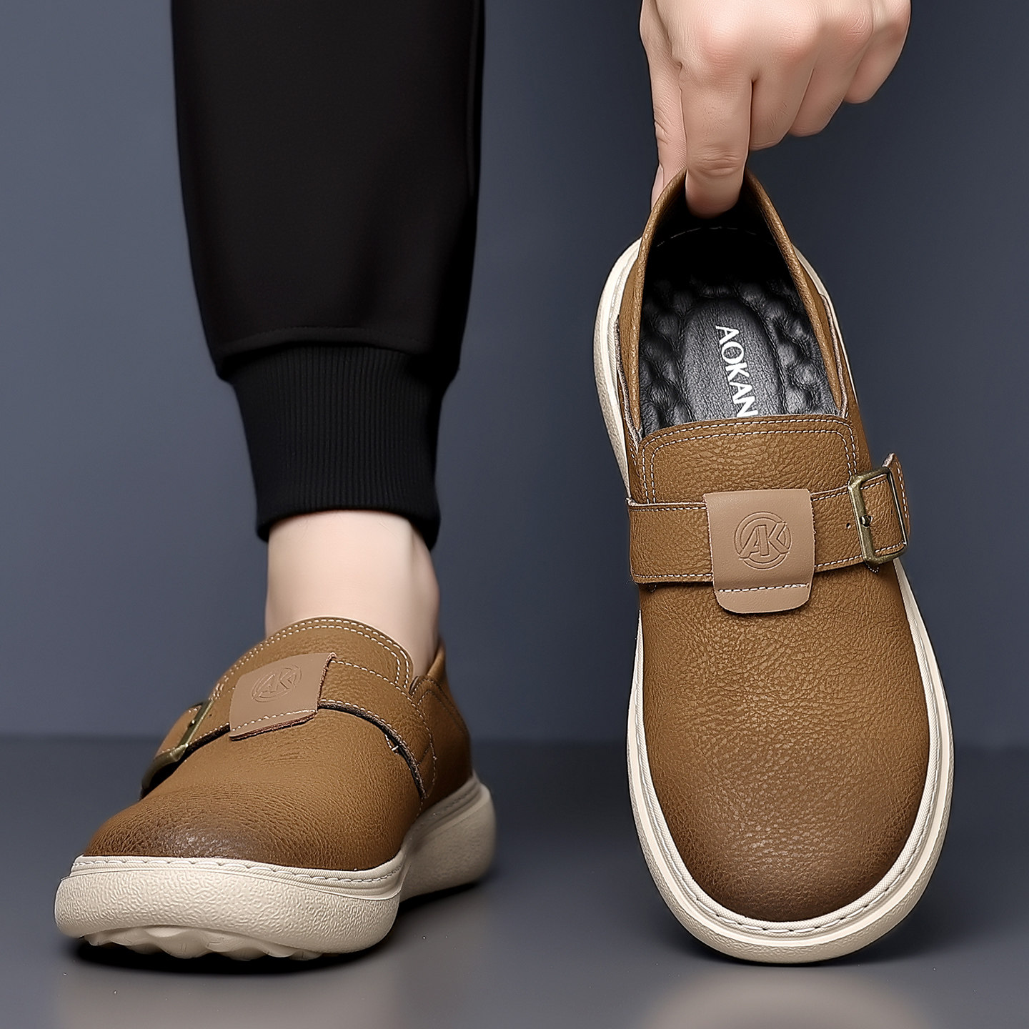 奥康官方男鞋春秋季真皮商务休闲皮鞋时尚套脚平底脚蹬舒适爸爸鞋