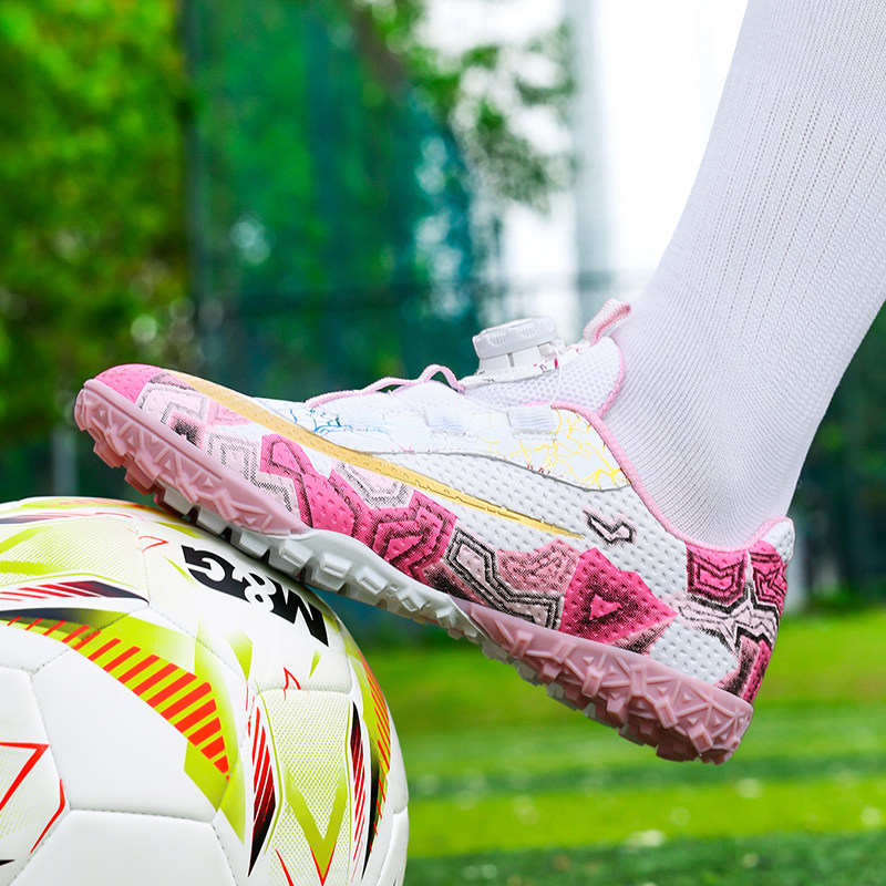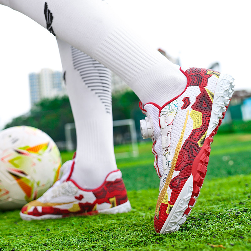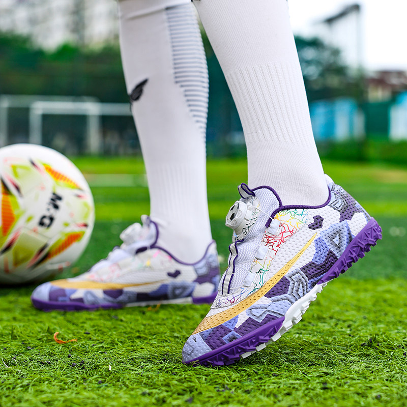 正版特价新款儿童足球鞋小学生男童女童碎钉透气旋钮训练鞋免系带