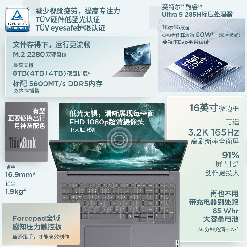 【新品AI】联想ThinkBook 16+ 2025 Ultra轻薄商务办公学生游戏ibm可独显英特尔Evo酷睿笔记本电脑官方旗舰店