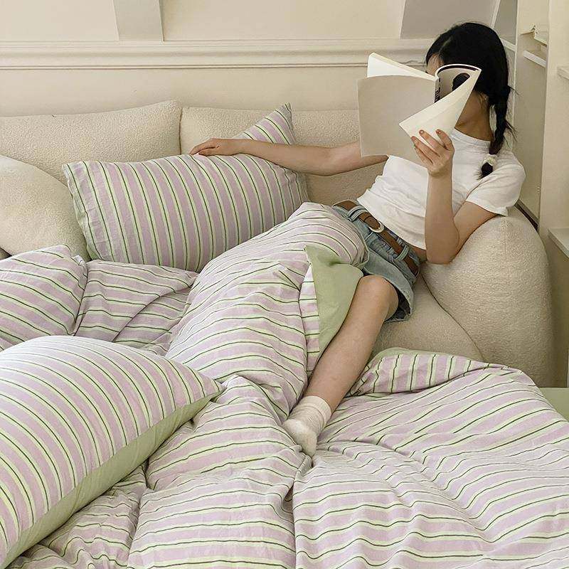2024新款全棉色织水洗棉四件套纯棉三件套学生宿舍套件