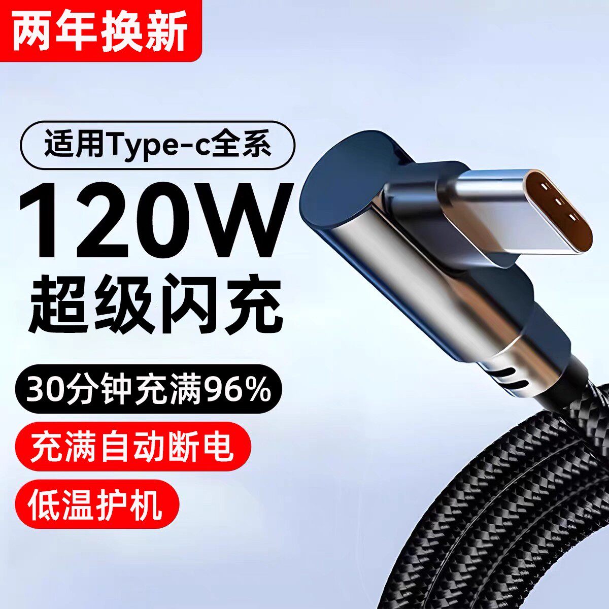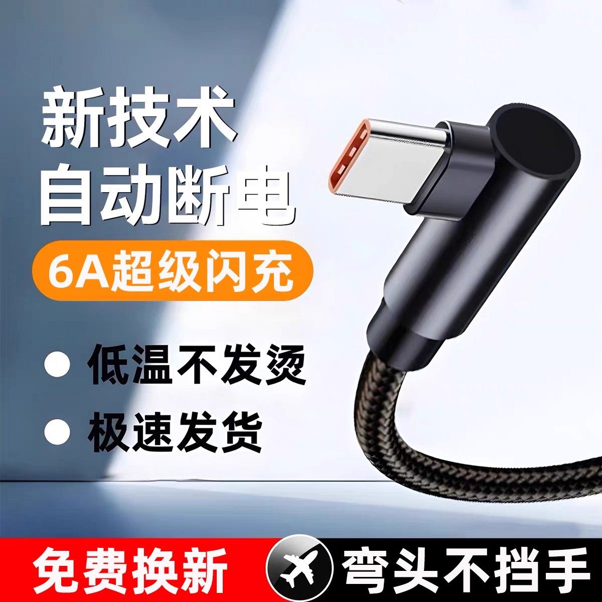 120W弯头Type-c数据线适用于华为荣耀全系列手机超级快充vivo闪充6A充电线游戏专用编织线认证芯片不伤机耐用