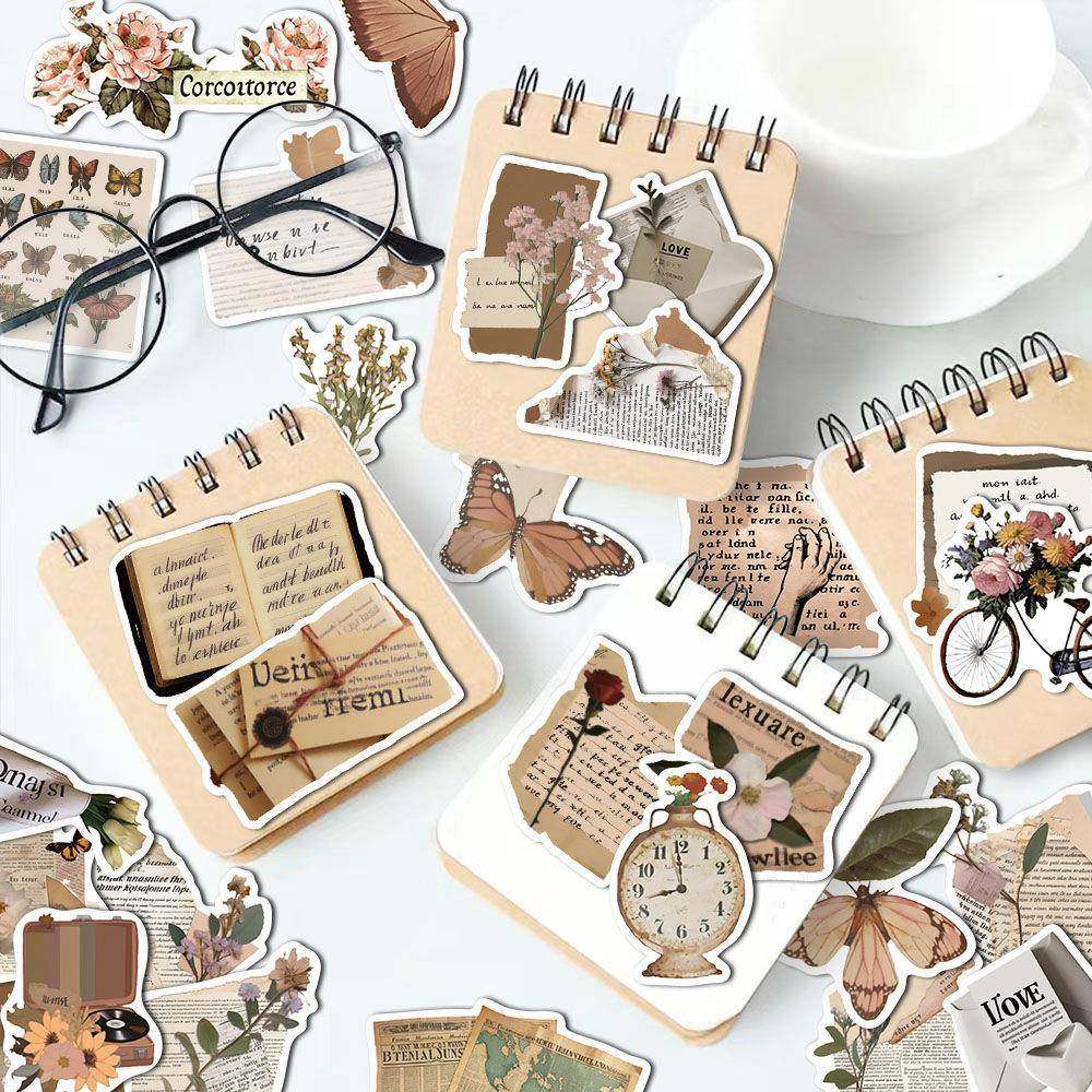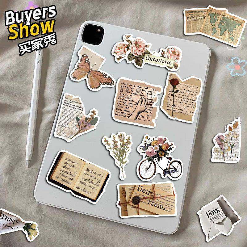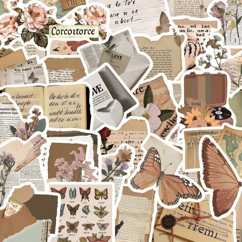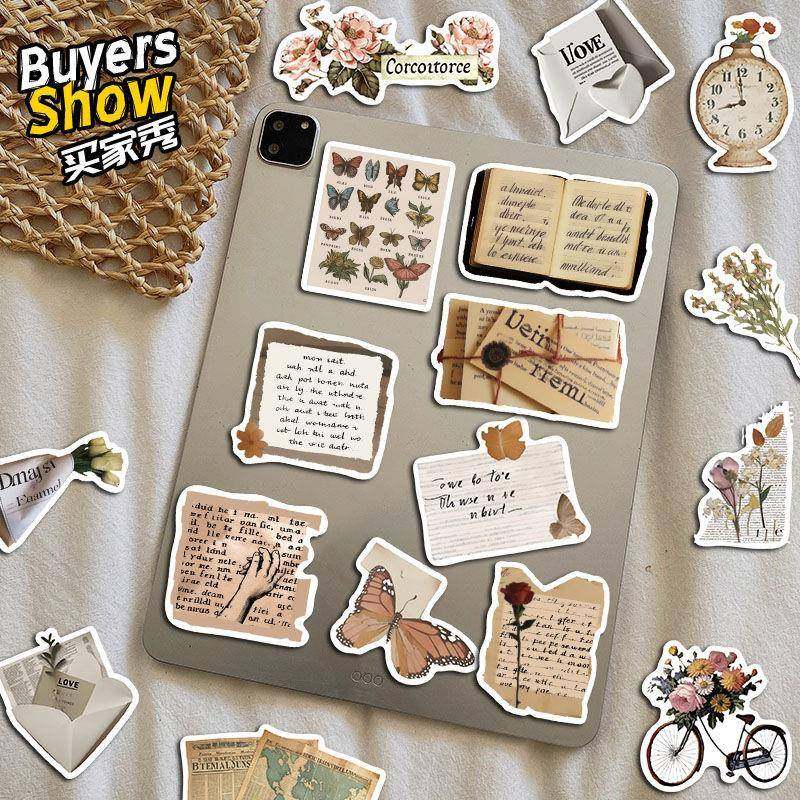 新款152张复古贴纸英文字母报纸精美欧美风不重复手帐PVC防水贴纸