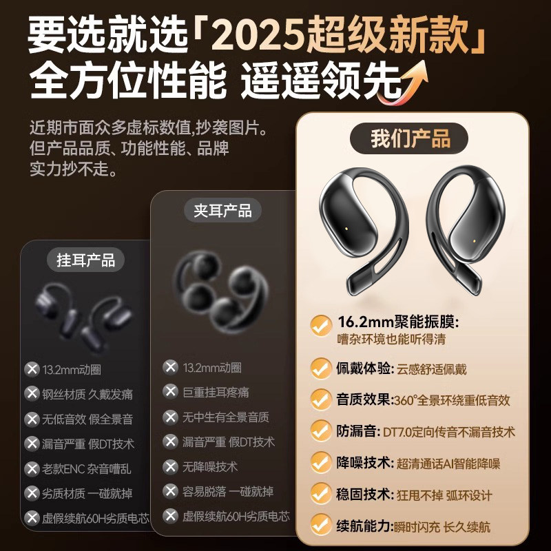 骨传导蓝牙耳机挂耳式2025新款无线不入耳长续航运动跑步适用索尼