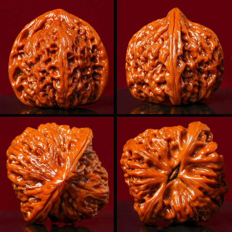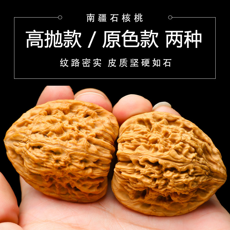 老北京文玩核桃打底玉化南疆石狮子头手把件机刷高抛35-45mm包浆