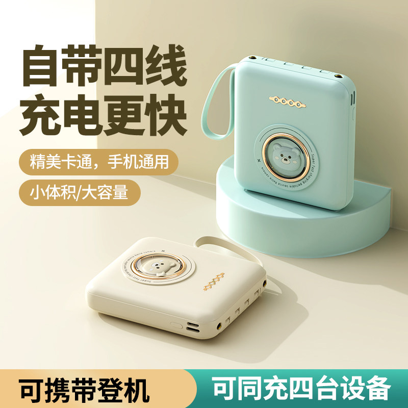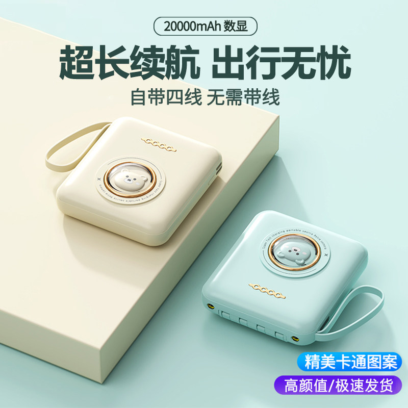 3C认证迷你充电宝超大容量20000毫安超薄小巧便携自带线快充可爱可上飞机移动电源适用华为vivo苹果手机专用