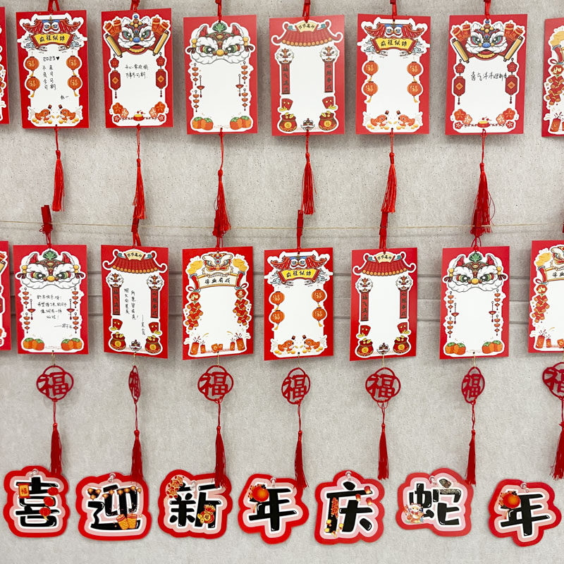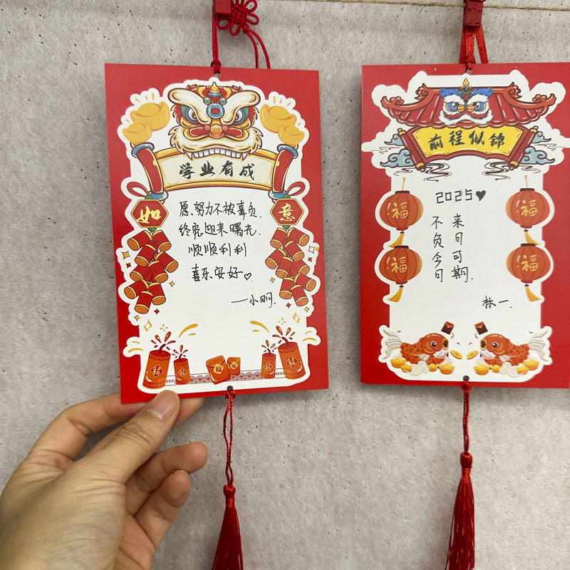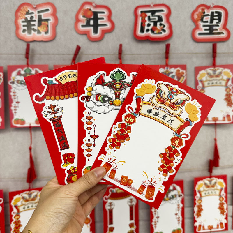 醒狮款喜庆马年新年学习成绩心愿卡小学生装饰卡片手写空白目标祈愿文化墙贴许愿挂卡元旦班级教室布置祝福卡