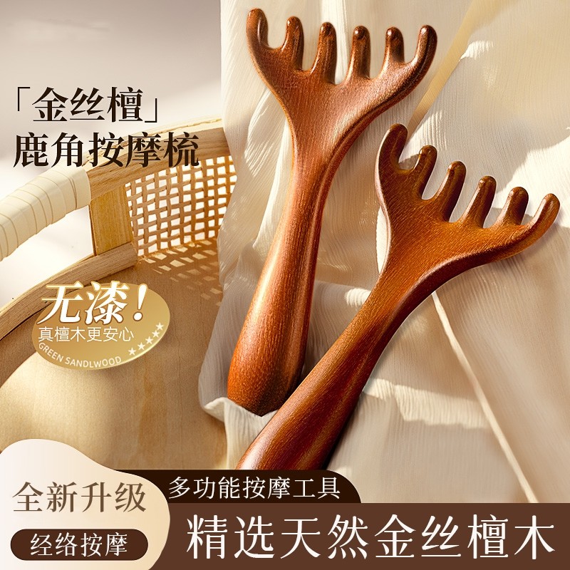 头部按摩经络梳子头疗工具头皮刮痧疏通神器面部提拉檀木随身鹿角