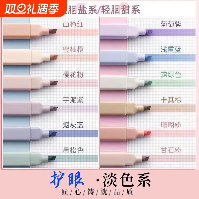 淡色护眼重点记号笔大容量 莫兰迪彩色荧光标记笔浅色粗头套装清