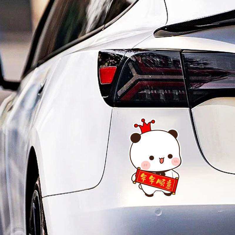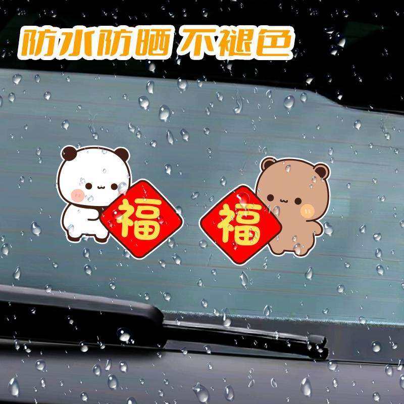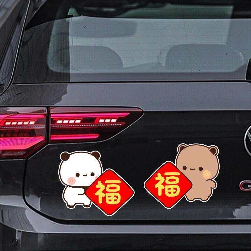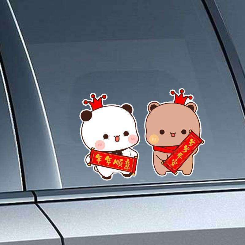 一二布布新年对联车贴创意卡通小熊汽车电动车过年春联福字装饰贴