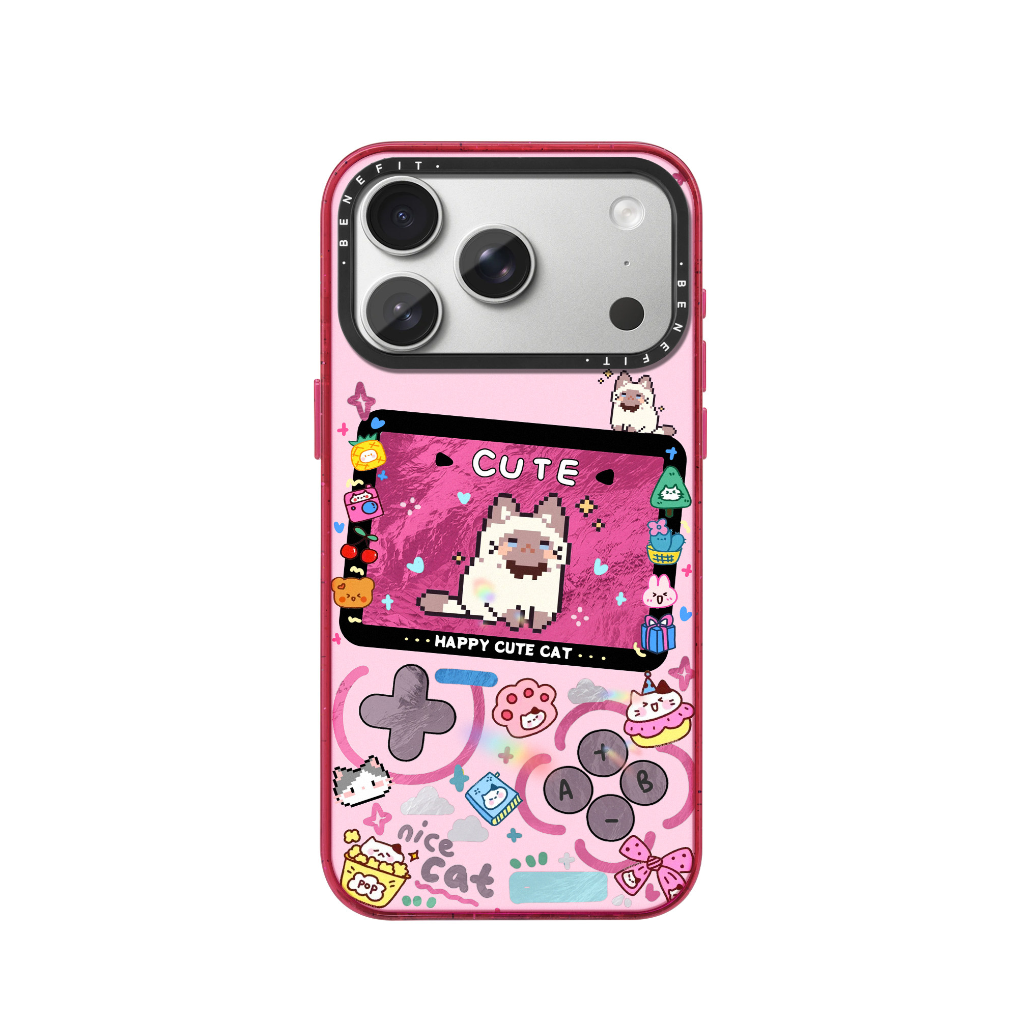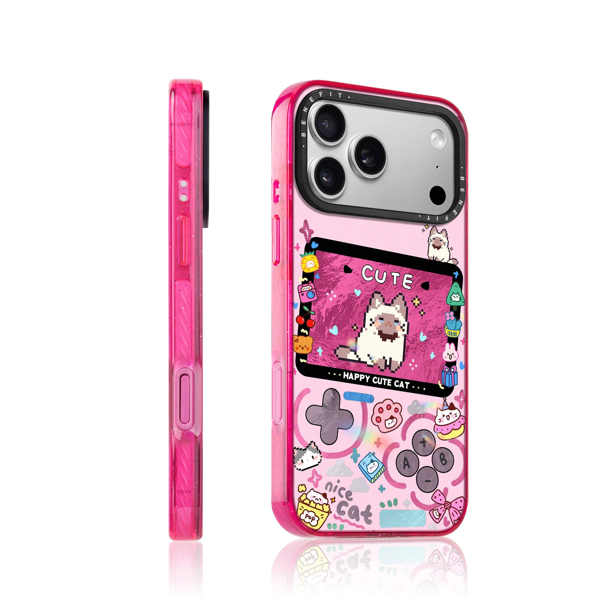 benefit卡通涂鸦马赛克小猫适用于iphone17promax苹果16PRO晶盾磁吸手机壳15新款13套14冰川纹12防摔彩色边框