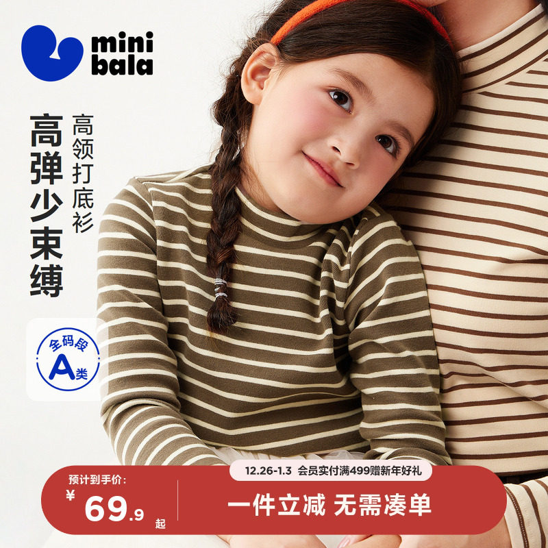 迷你巴拉巴拉亲子儿童男女童长袖T恤冬高弹打底衫