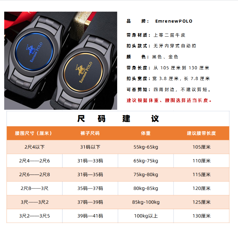 保罗polo皮带男士腰带真皮自动扣韩版中青年商务休闲百搭潮裤腰带