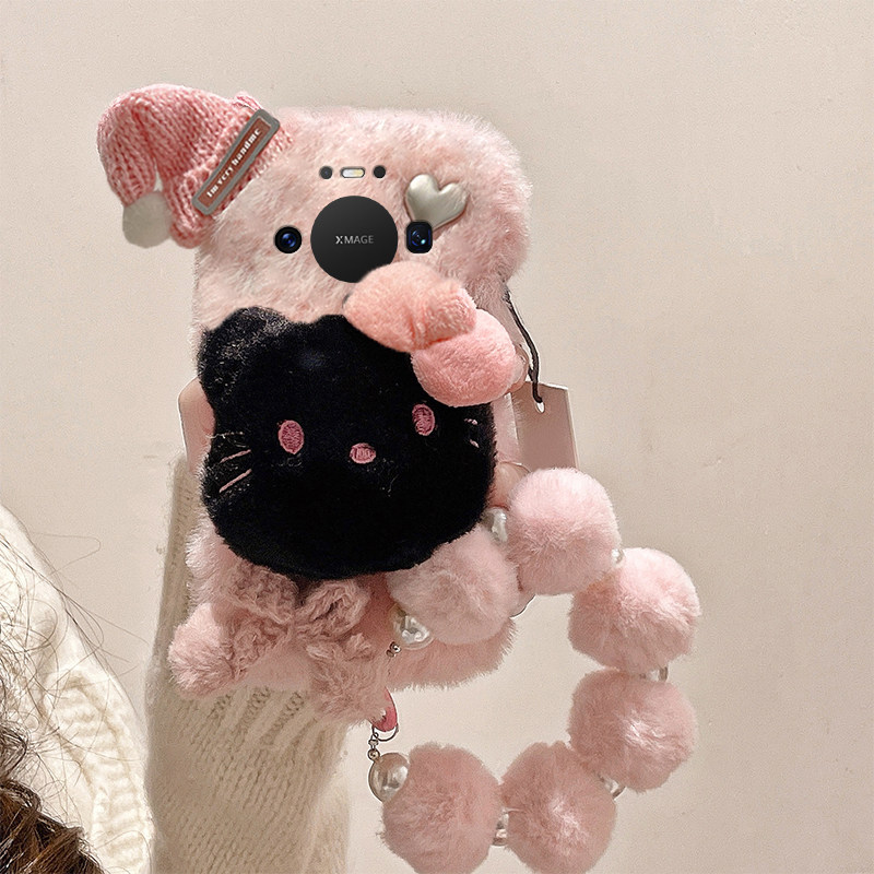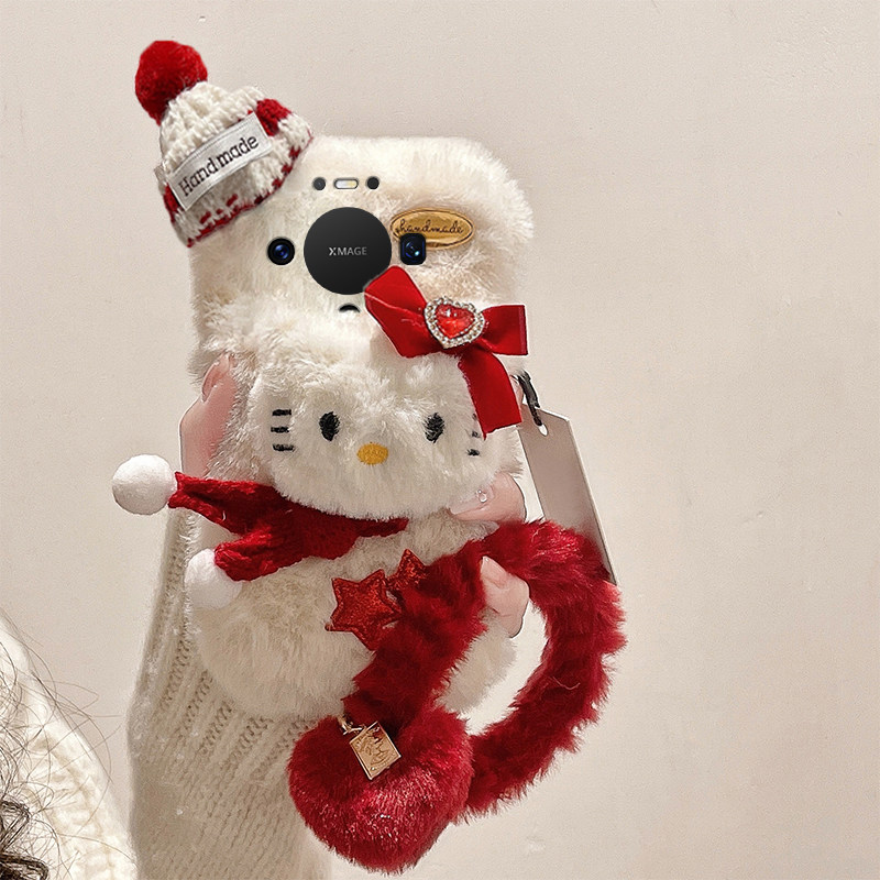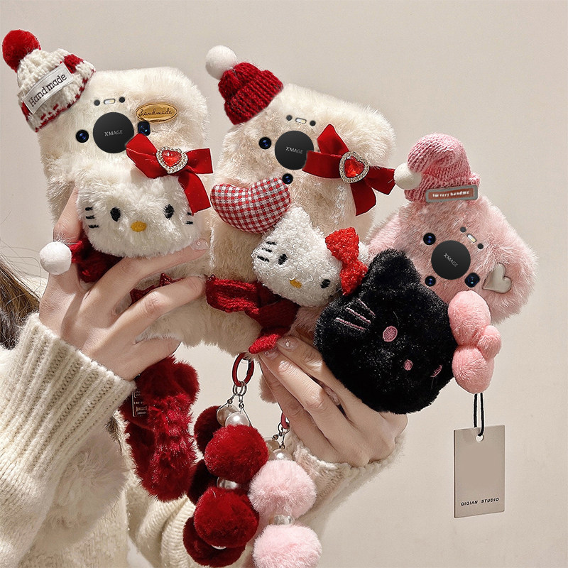 星星凯蒂猫适用华为mate80pro+手机壳meta80promax立体80rs非凡大师帽子80gts秋冬季十毛绒huawei手环卡通软p