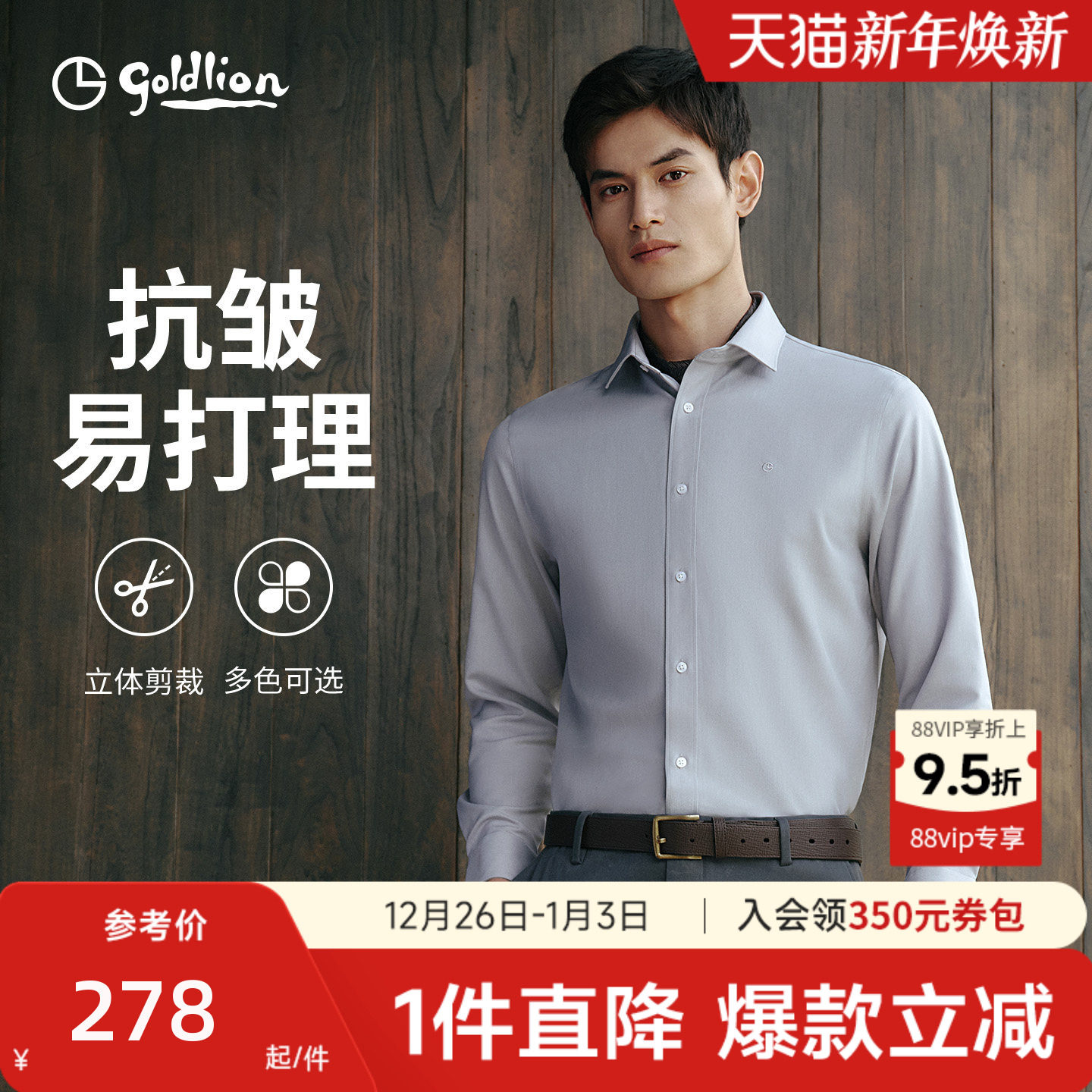 【柔软抗皱】金利来秋冬新款男士长袖衬衫易打理商务弹力衬衣男