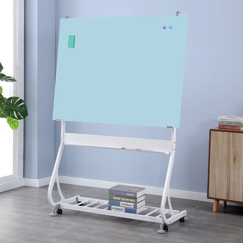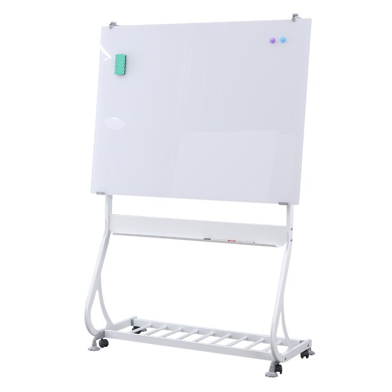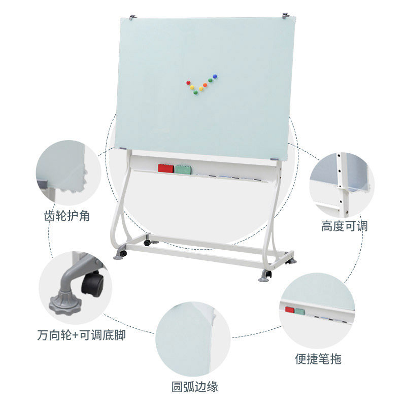 柏可嘉钢化玻璃白板支架式家用培训会议教学黑板移动白板黑色S架彩色玻璃白板立式白板