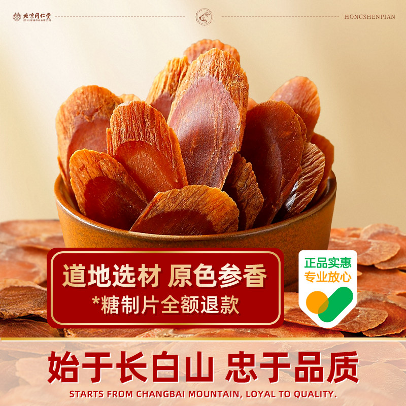北京同仁堂长白山红参片正品官方旗舰店人参高丽参补中草药材气血