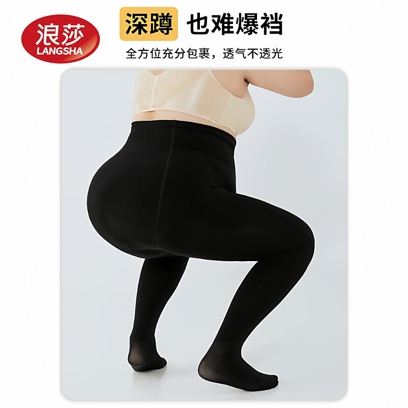浪莎不掉档光腿神器女春秋冬季外穿胖mm200斤大码黑色打底连裤袜