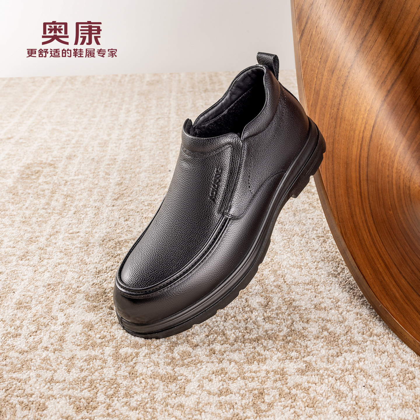 奥康 男鞋2025冬季新款乐福鞋公务一脚蹬爸爸加绒皮鞋门店发货