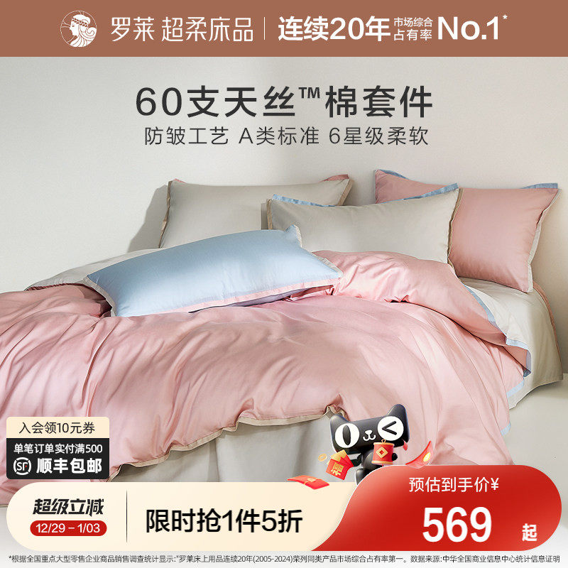 罗莱家纺床笠四件套小魔皮60支兰精天丝棉A类春夏新款防皱套件