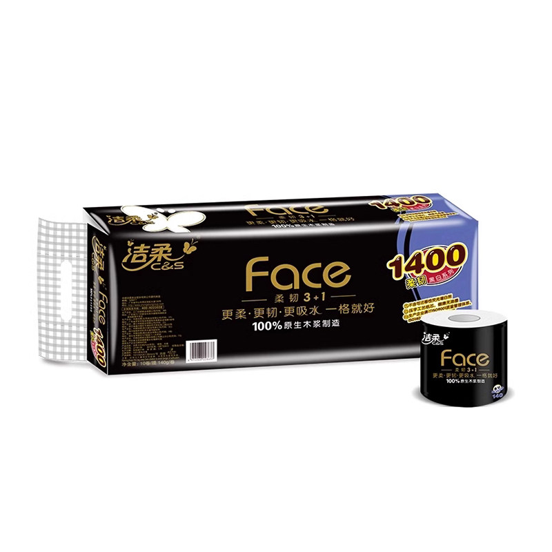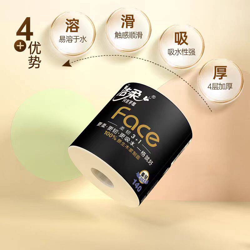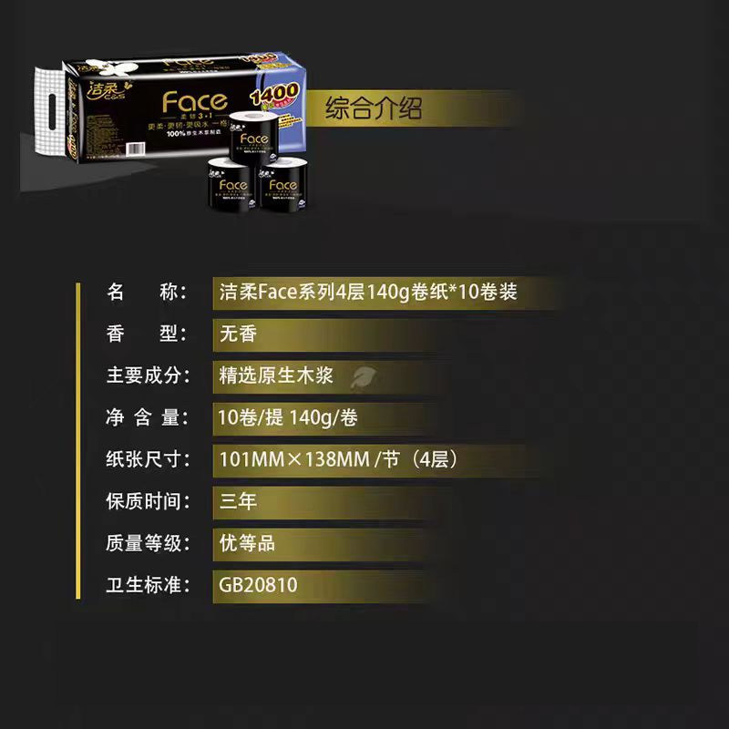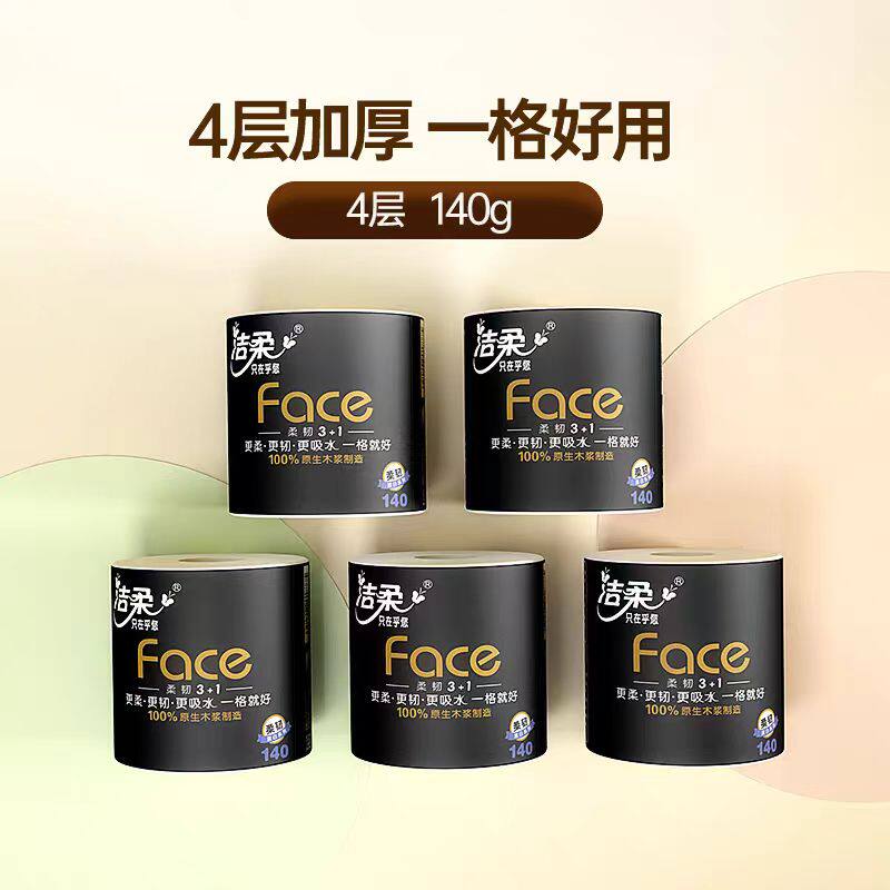 洁柔有芯卷纸黑face140g提箱装家用实惠厕所大卷卷筒纸卫生纸纸巾