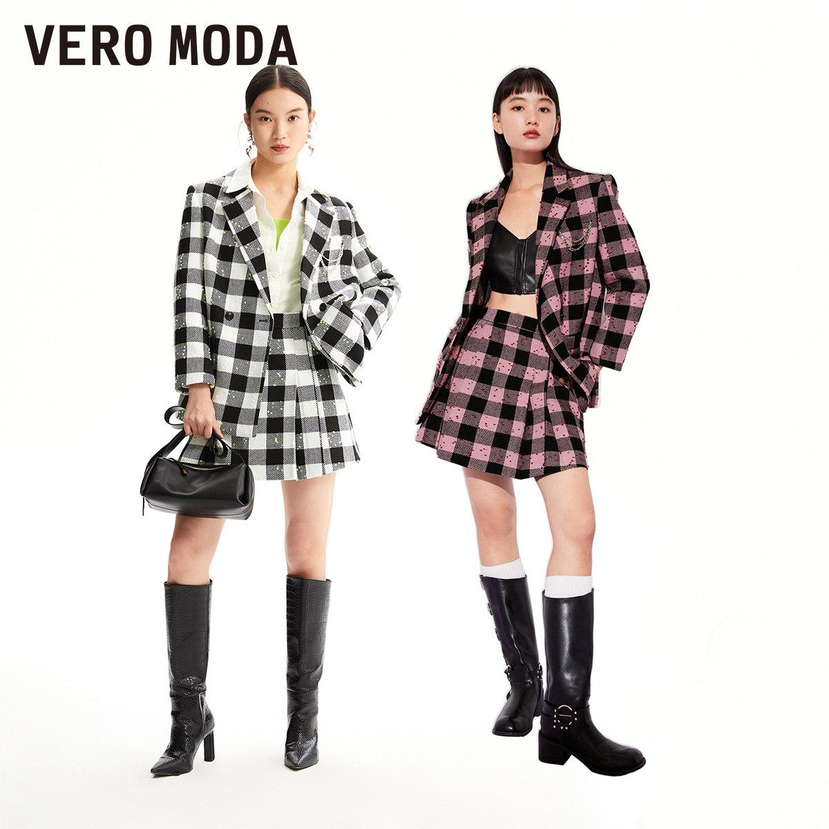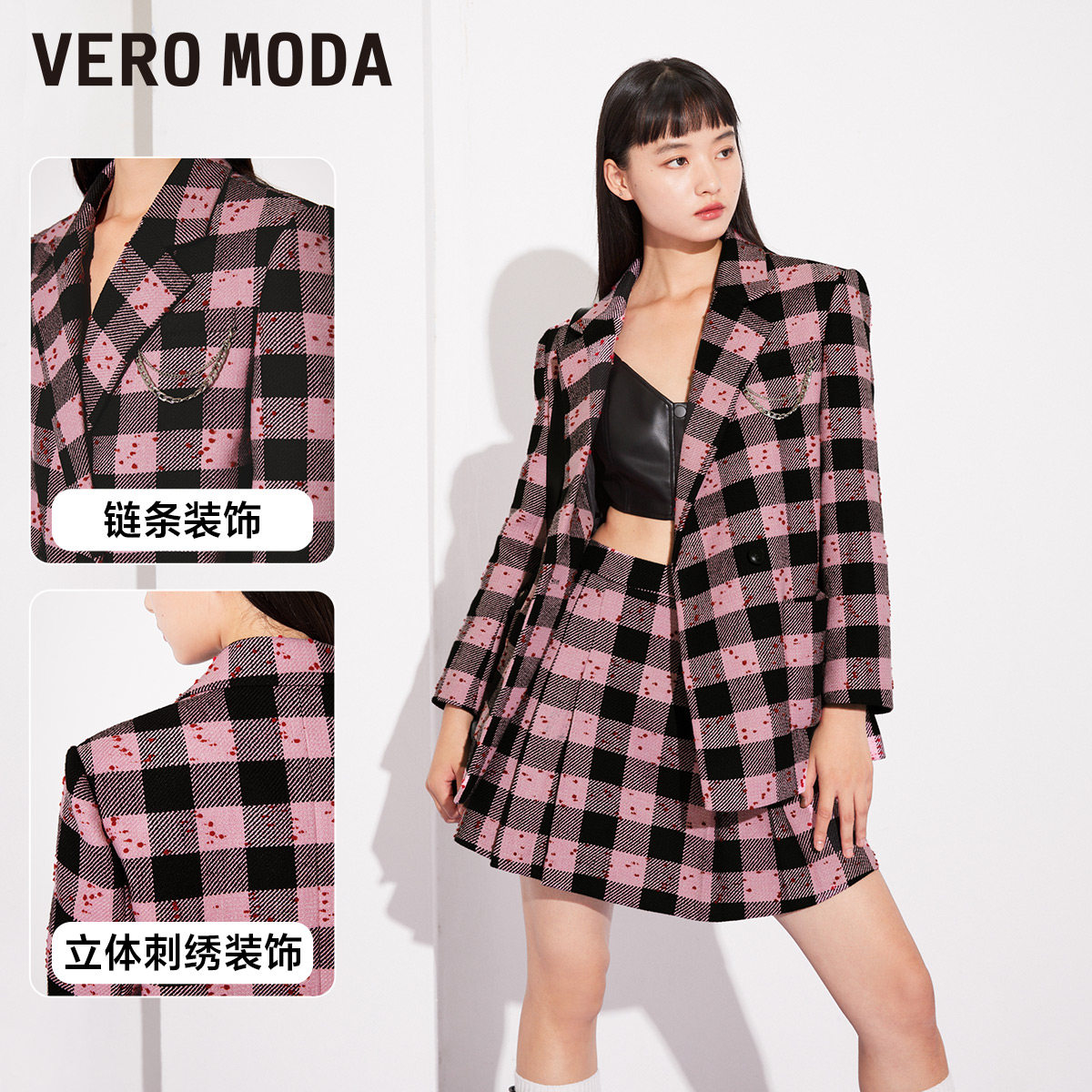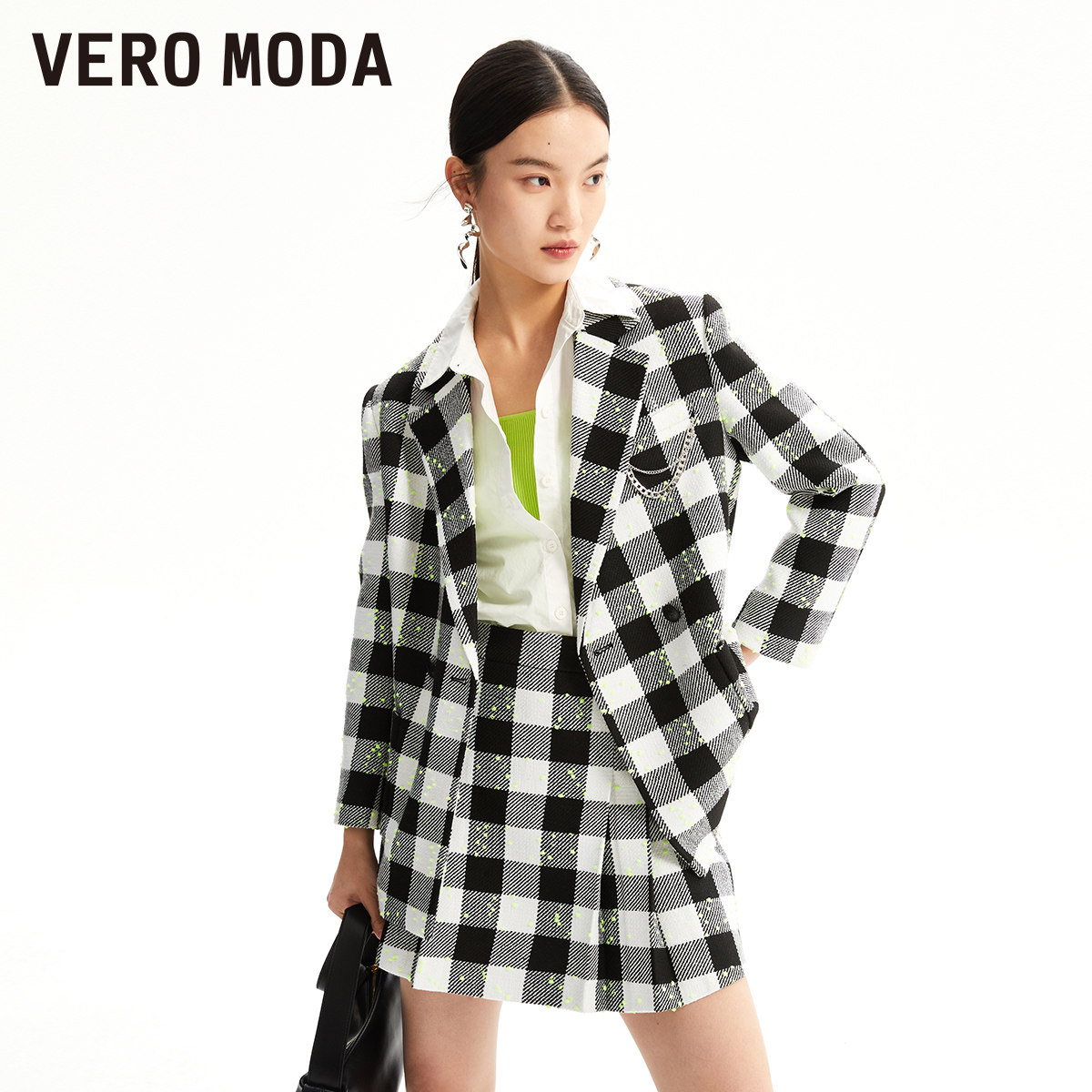 Vero Moda奥莱半身裙秋冬清仓可爱少女格纹图案高腰A摆短裙百搭