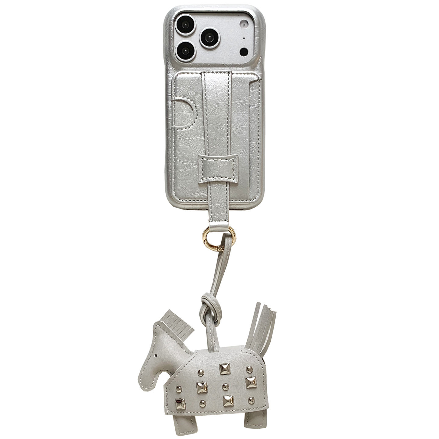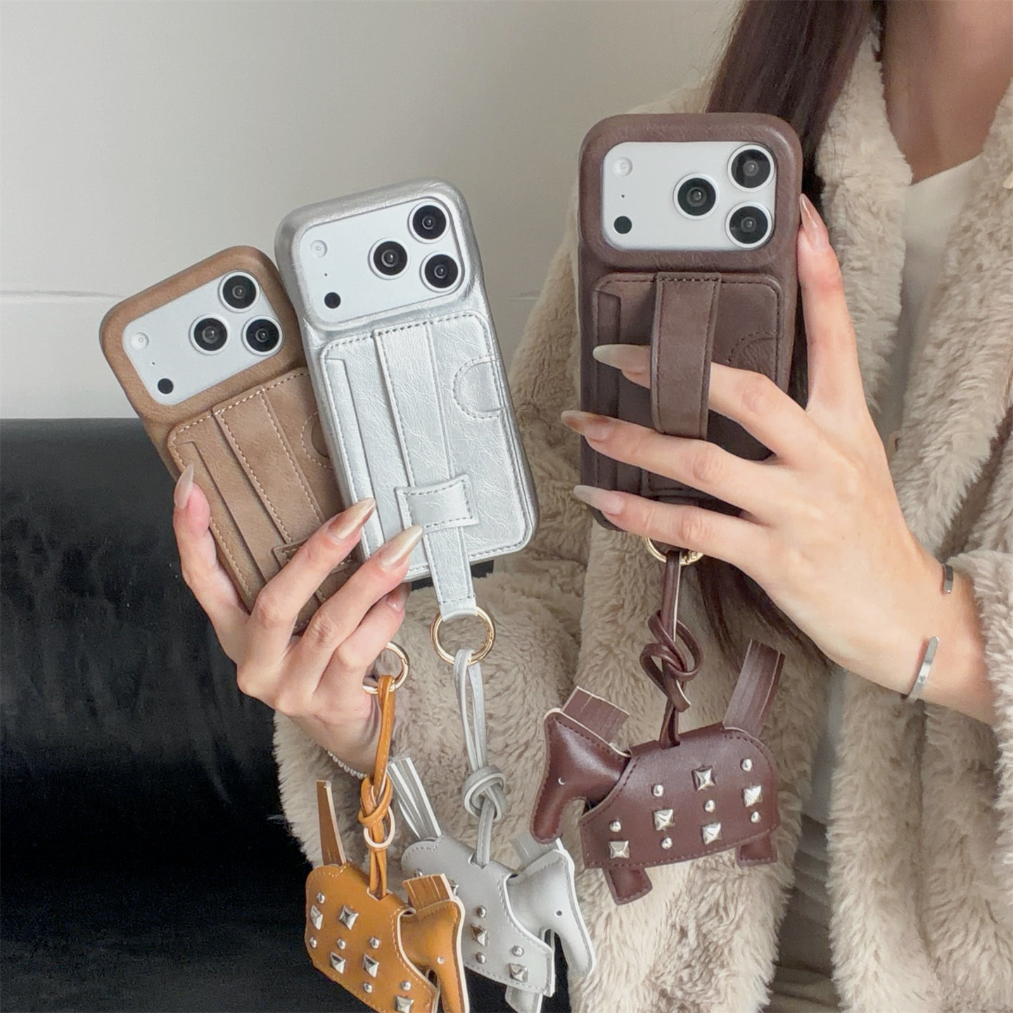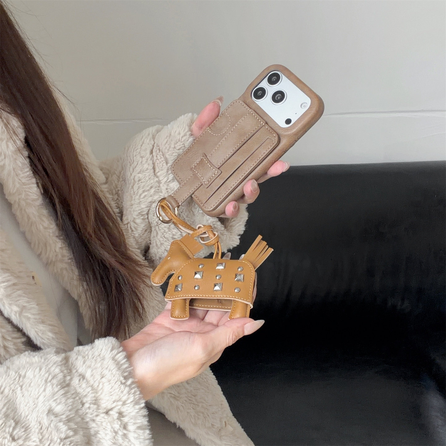 铆钉小马挂件抽拉腕带支架指环扣插卡包适用苹果17promax手机壳16pro保护套15promax皮质14pro可装放卡一体13