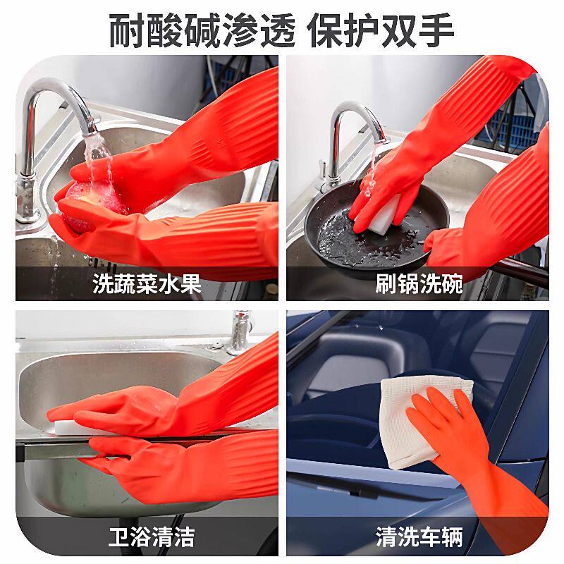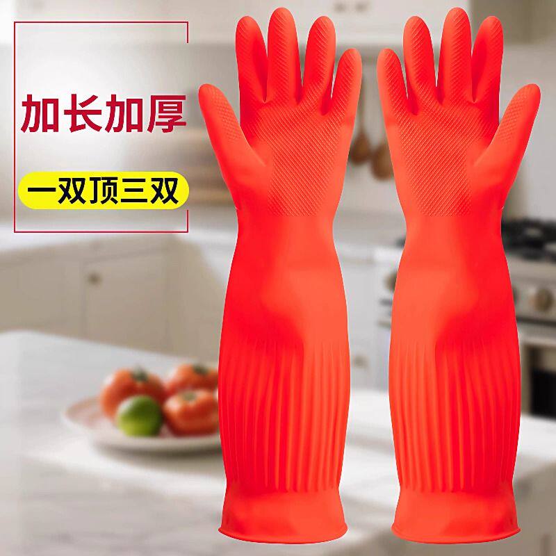 加长手套橡胶乳胶手套洗碗清衣加厚家务手套厨房劳保胶皮手套