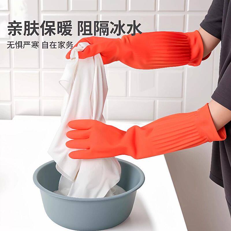 洗碗手套加绒加厚保暖款男女厨房耐用橡胶乳胶皮洗衣加长手套家务