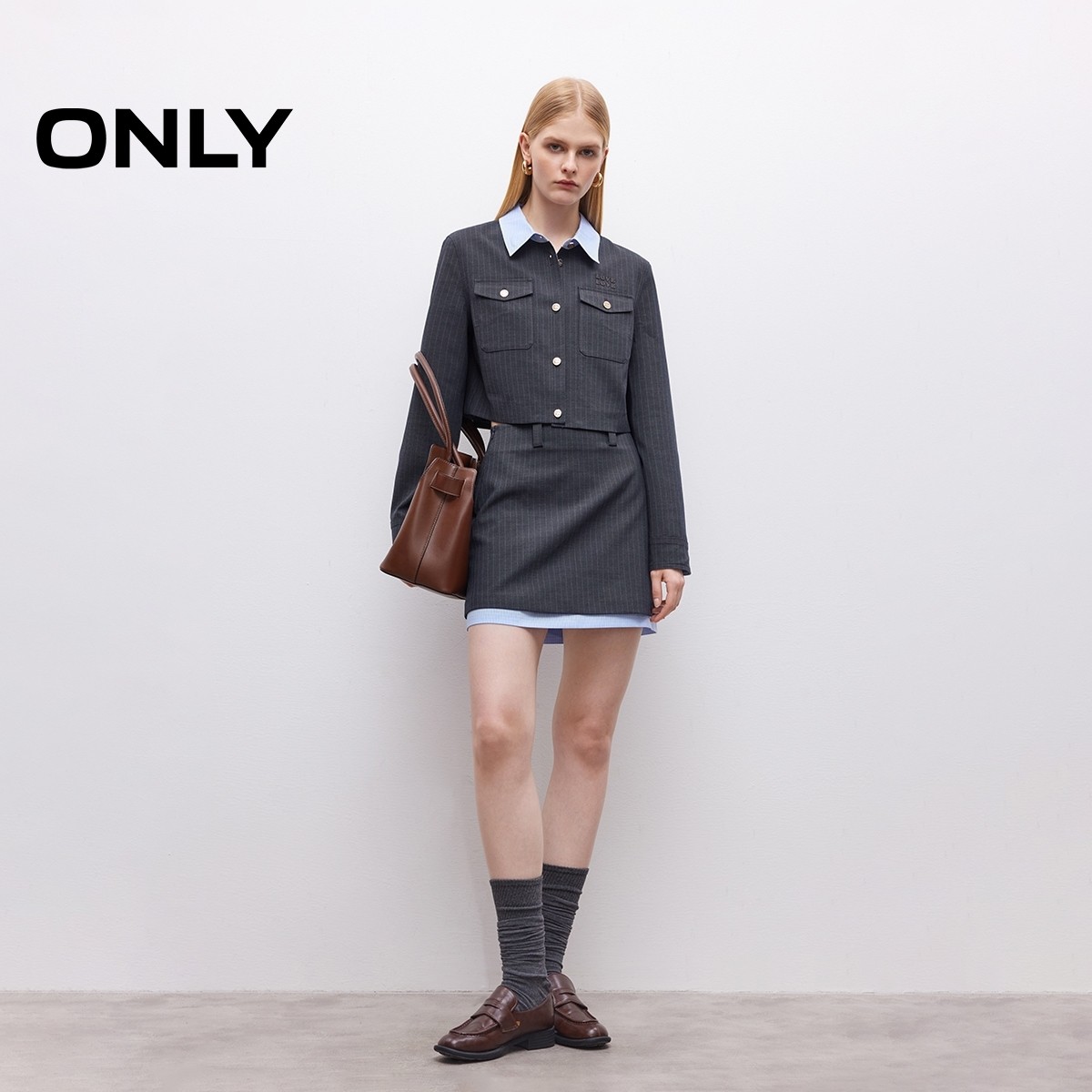 【ONLY奥莱】春款撞色双层裙边挺括西装面料A字包臀短裙半身裙女