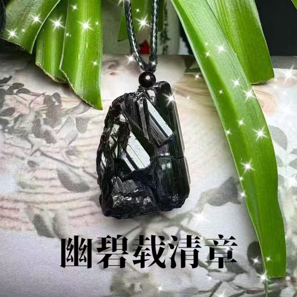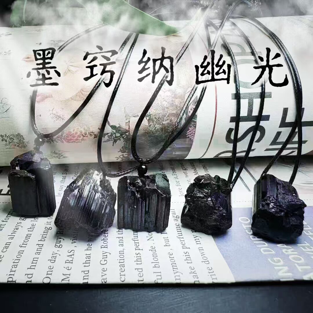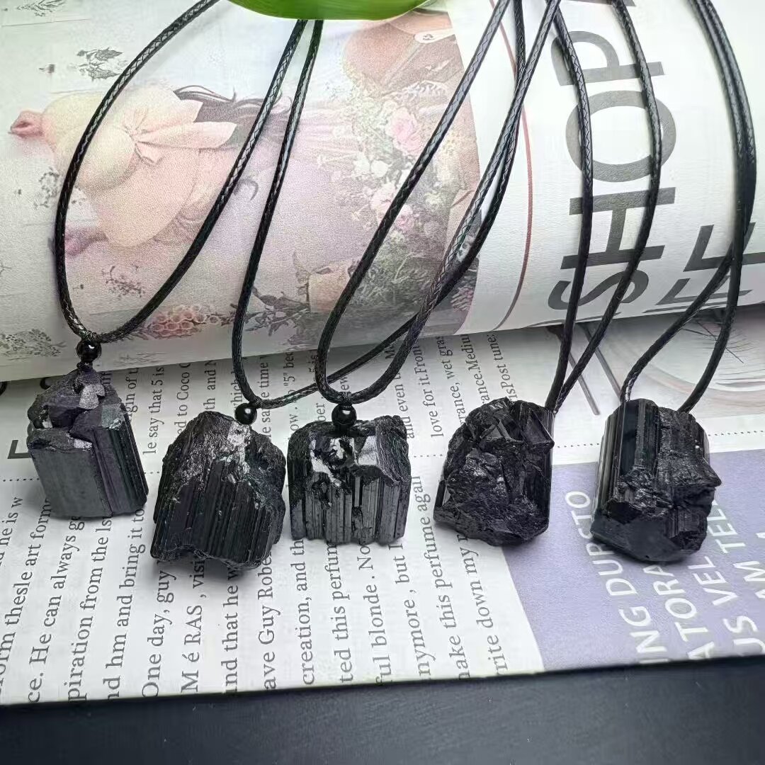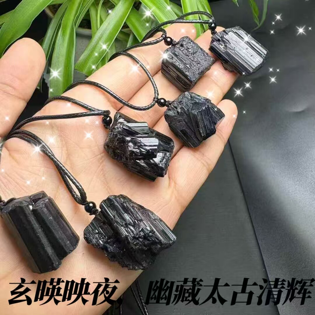 黑碧玺大颗粒电气石简约大气新款矿物标手工皮绳款吊坠