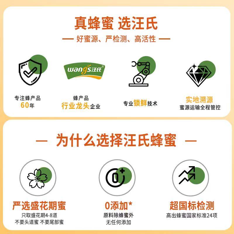 汪氏蜂蜜纯正天然野生纯蜂蜜官方正品雪颜玫优质挤压瓶465g真蜂蜜