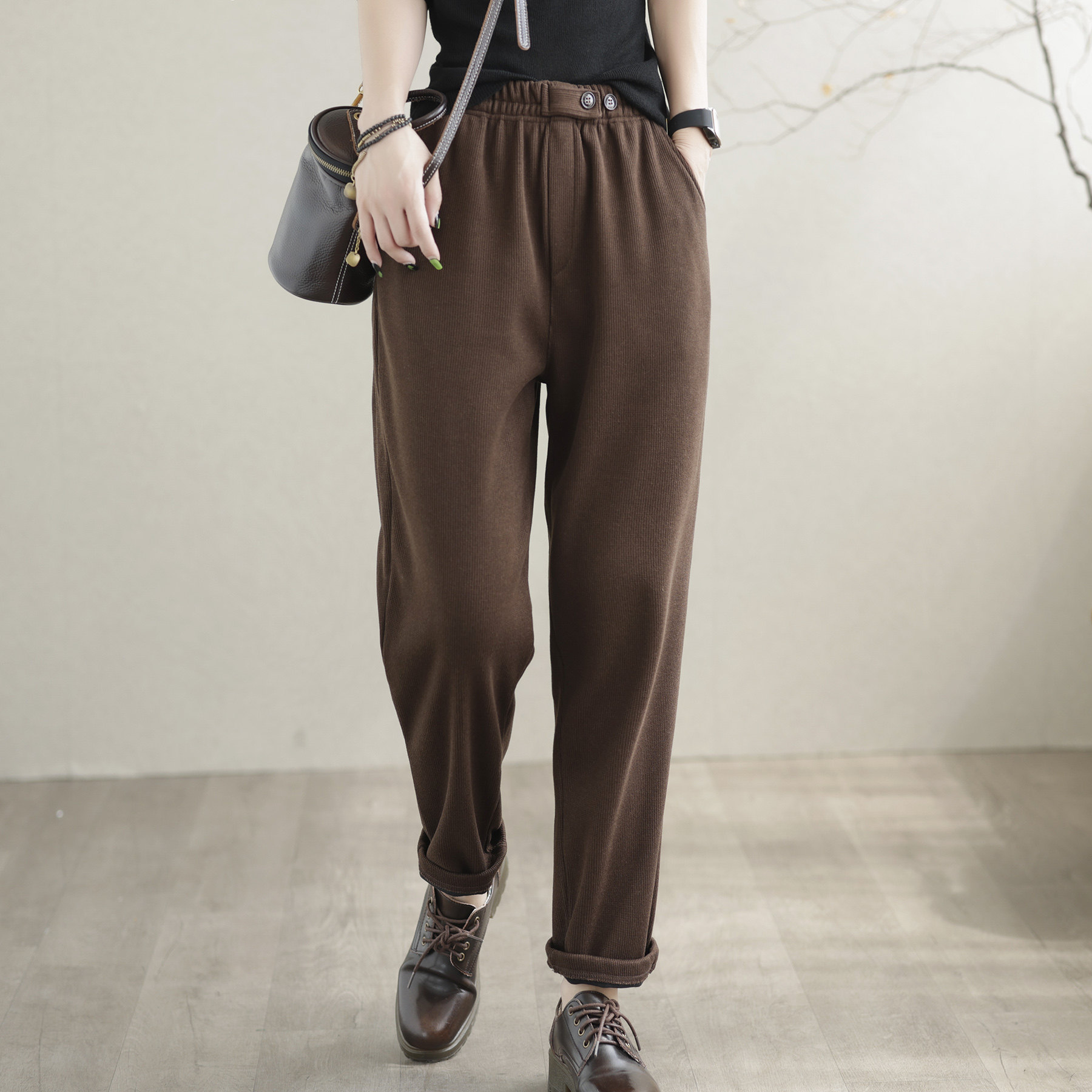 咖咪羽加绒休闲裤咖色女款冬装女士裤子加厚原创时尚女装哈伦裤女
