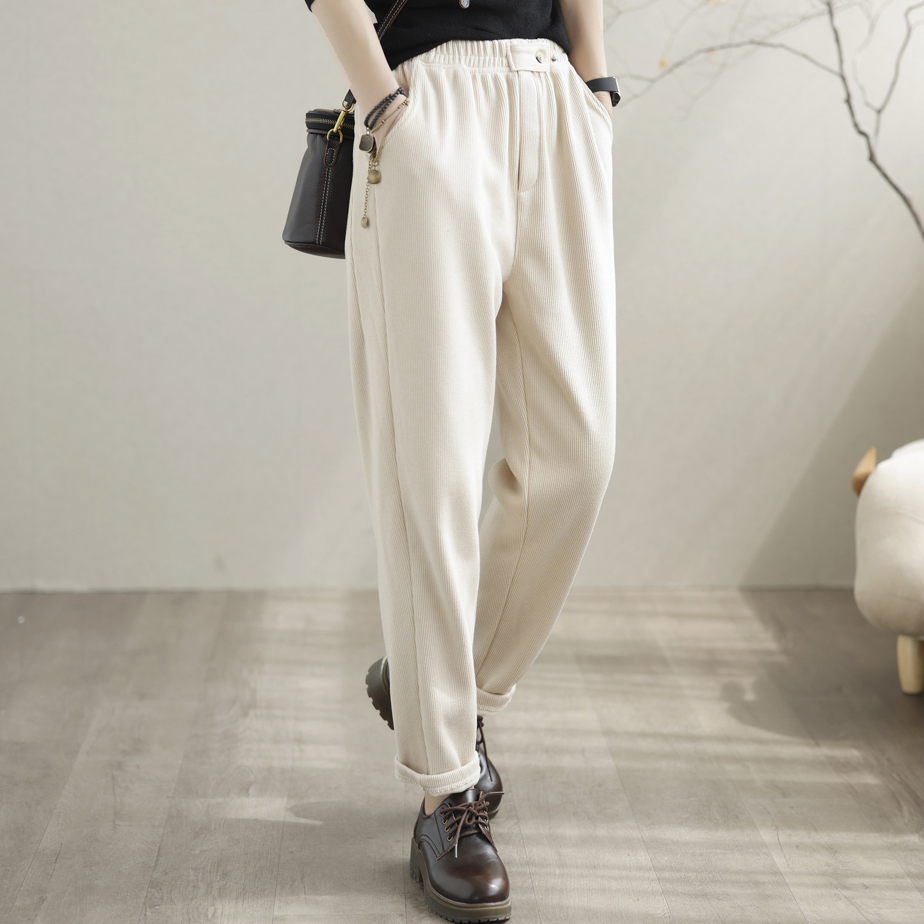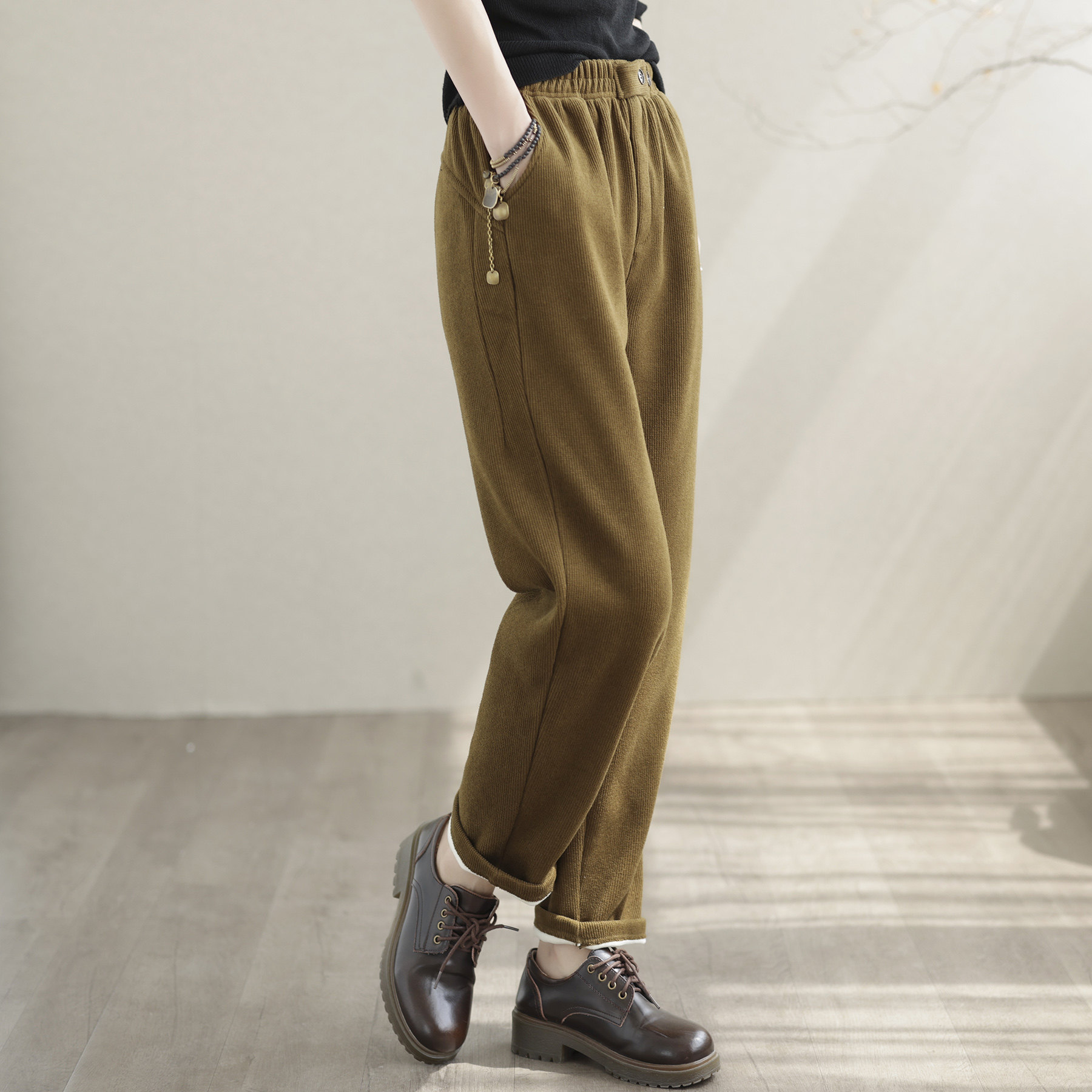 魔悦加绒糯米裤2025秋冬新款口袋显瘦休闲裤