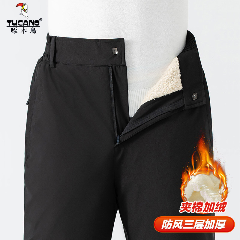 啄木鸟棉裤男款冬季加绒加厚男士冲锋裤外穿防风保暖羊羔绒裤子男