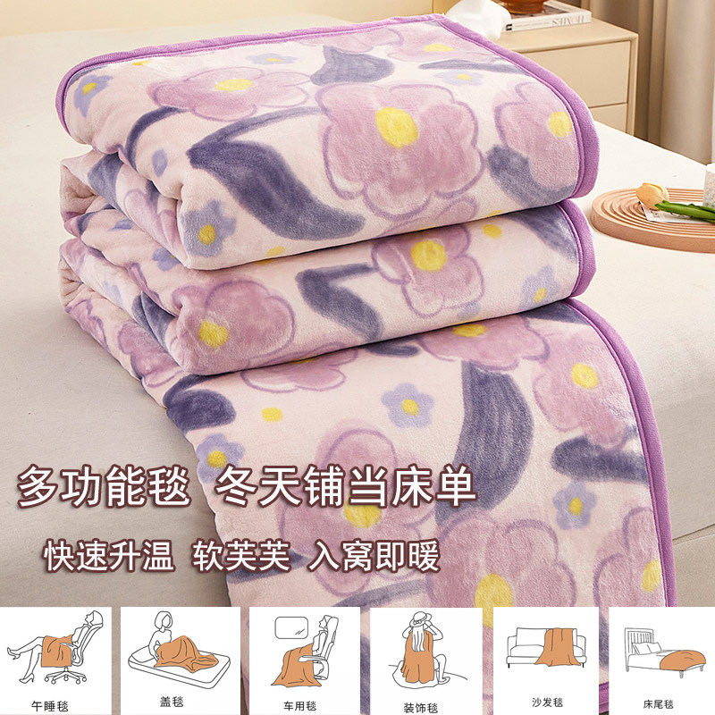 A类牛奶绒毛毯冬季盖毯可机洗单人宿舍毯披肩午睡毯双面绒床单厚