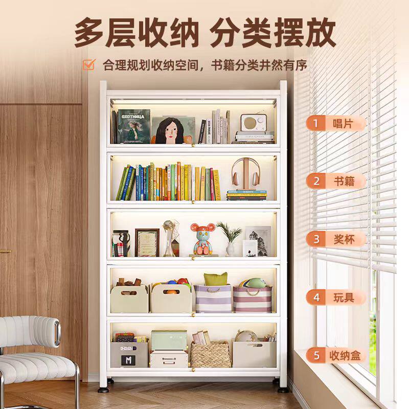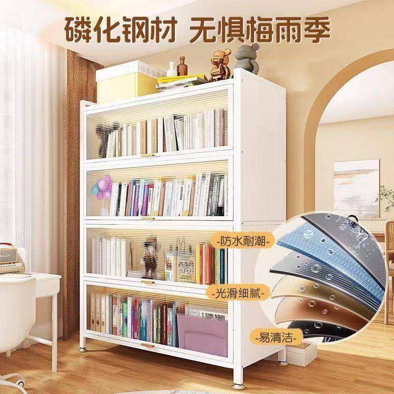 钢制书柜带门落地儿童书架家用客厅柜子多层置物架防尘储物柜收纳