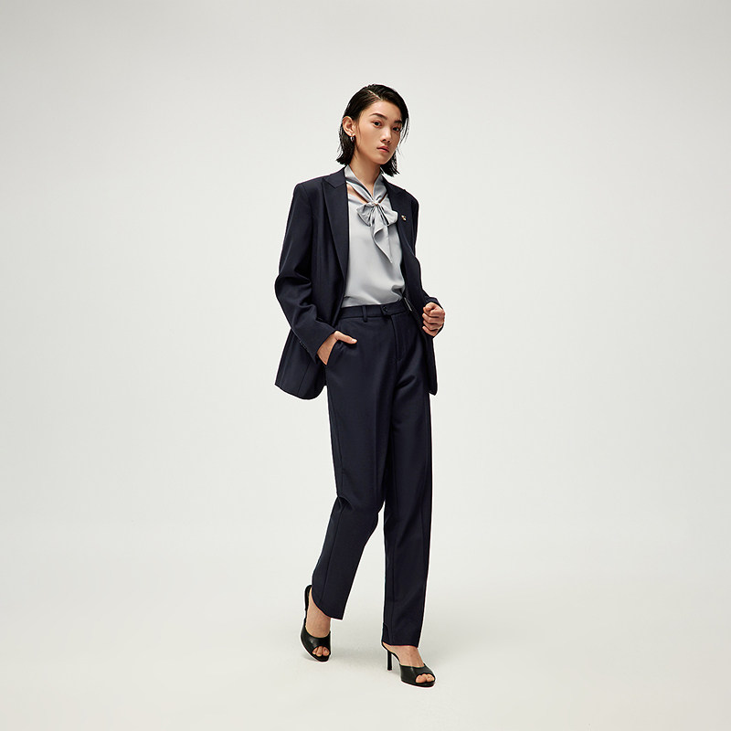 HLA/海澜之家含羊毛西服套装26春戗驳领胸针通勤风套西女装
