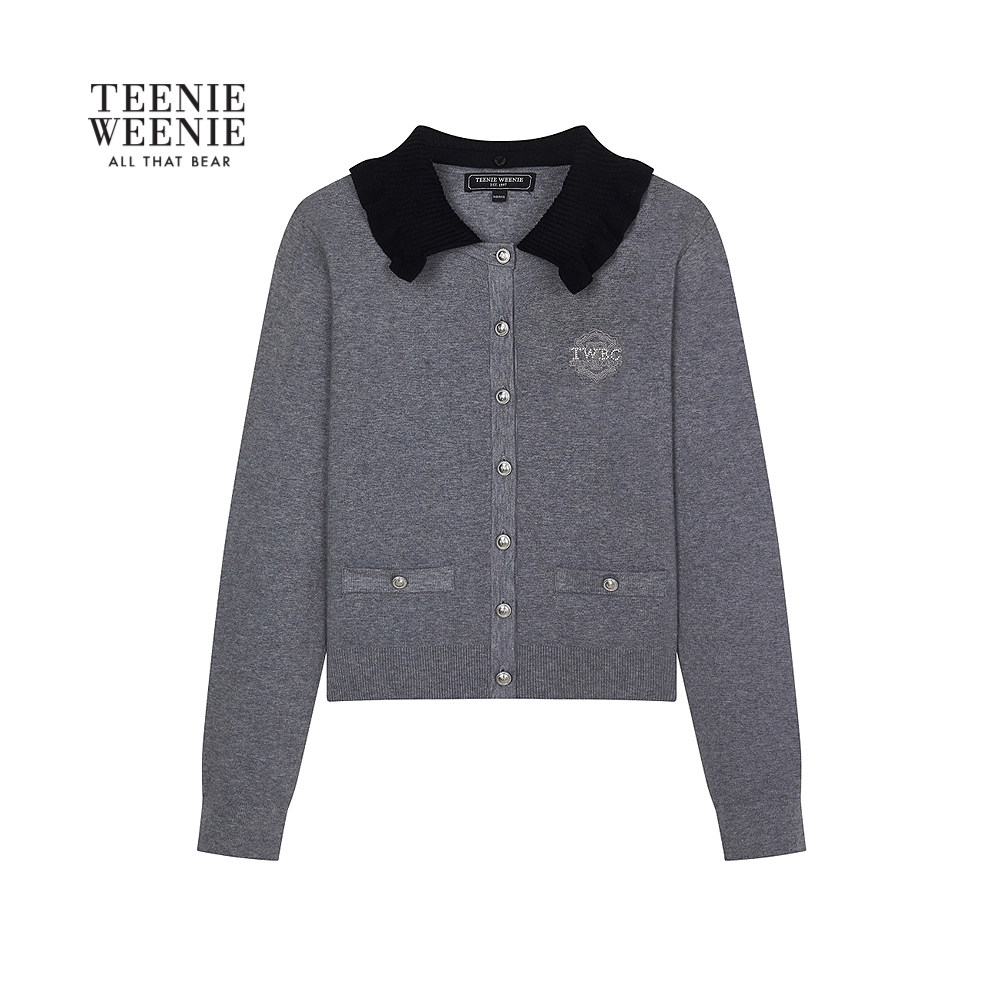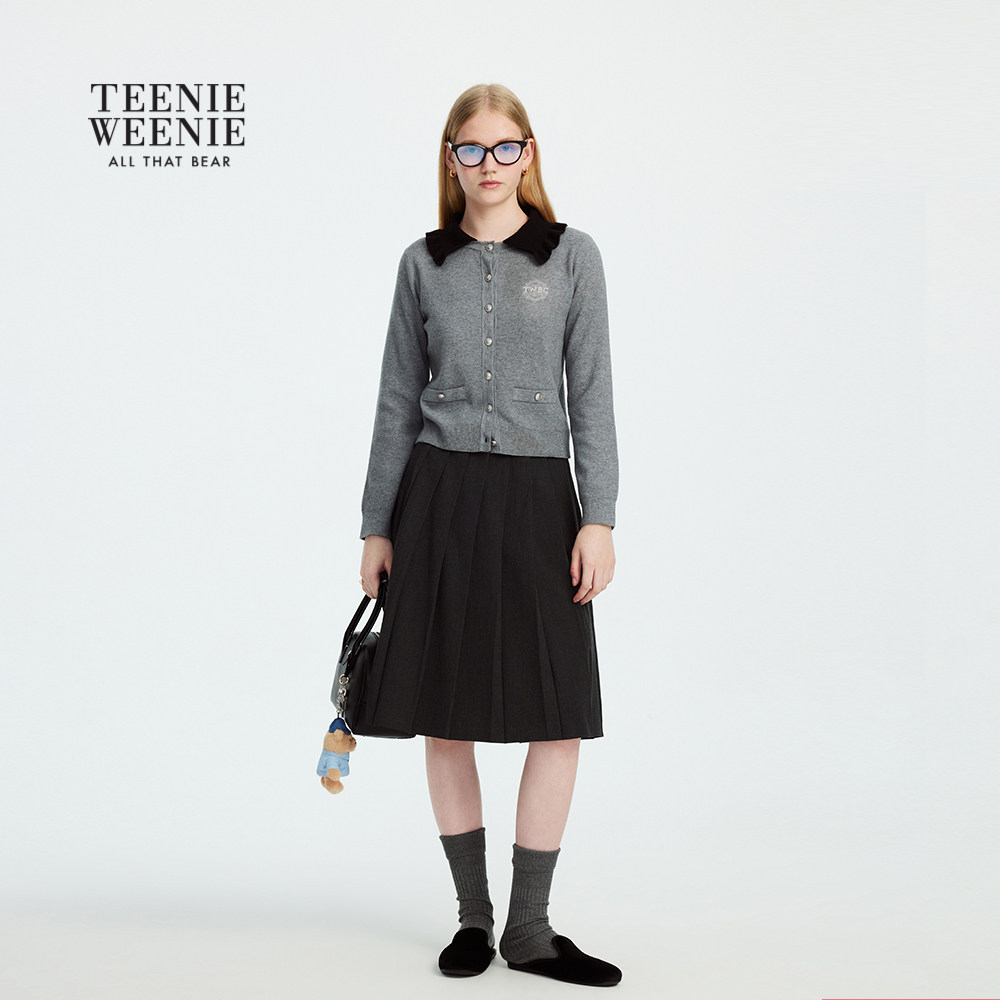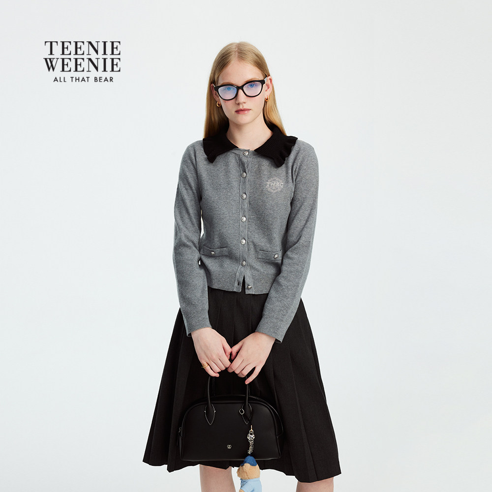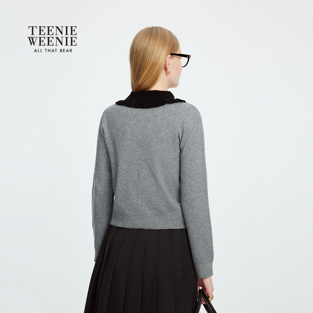 TeenieWeenie小熊女装毛针织衫2025秋季新款时髦复古翻领两穿开衫