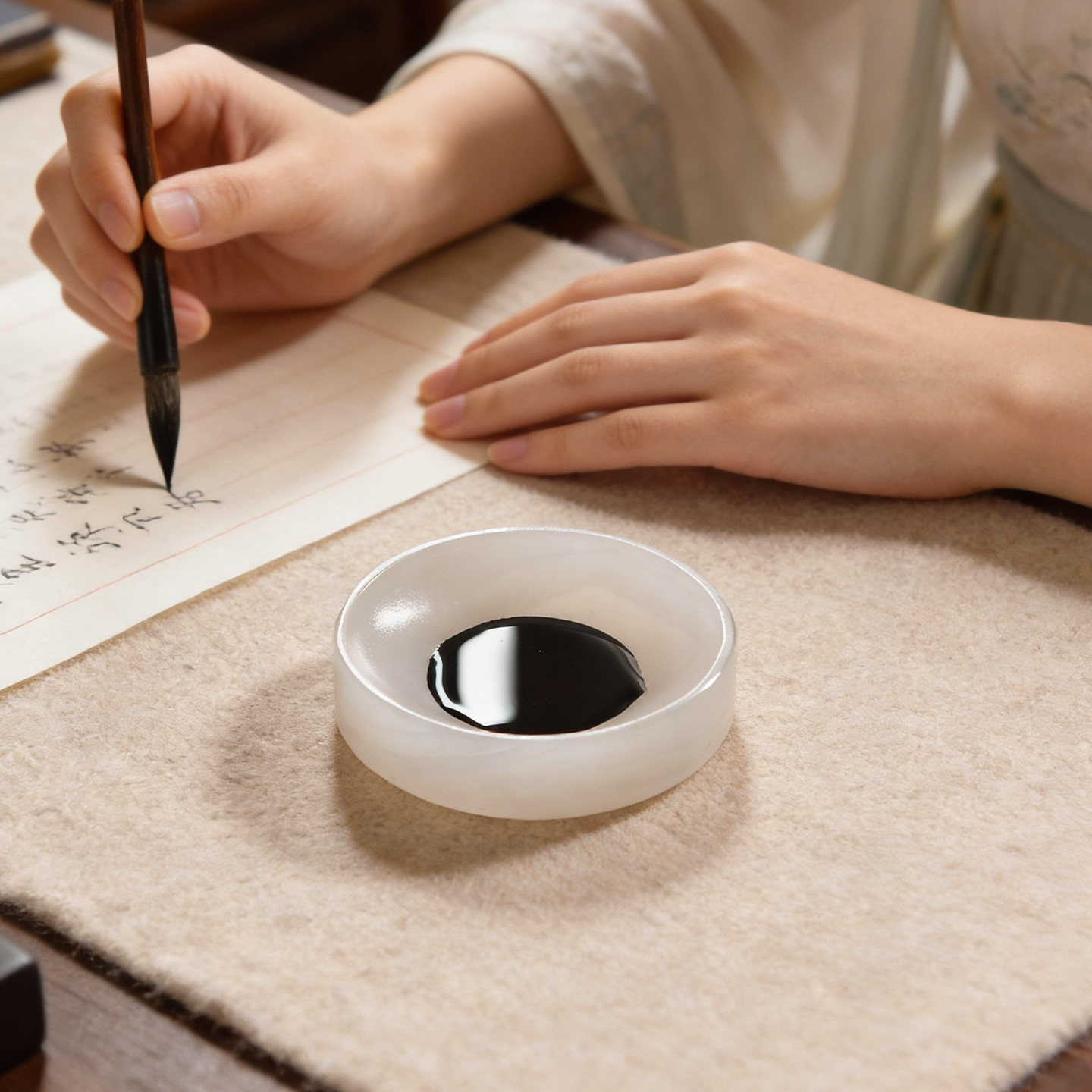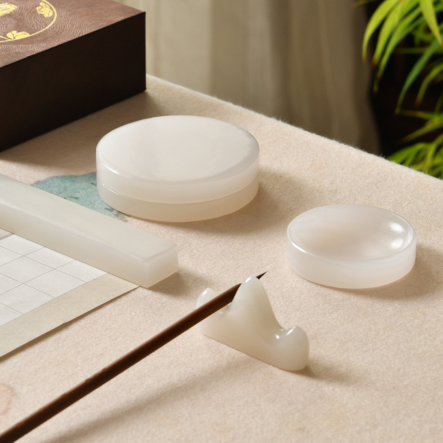 赵北玉石笔舔书法墨碟天然纹理手工打磨天然阿富汗玉石随形舔笔台案头雅石清供兼具笔舔与纸镇功能