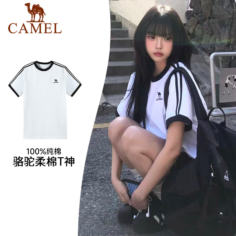 [迪丽热巴同款]骆驼柔棉T神夏季短袖T恤女情侣宽松休闲上衣男