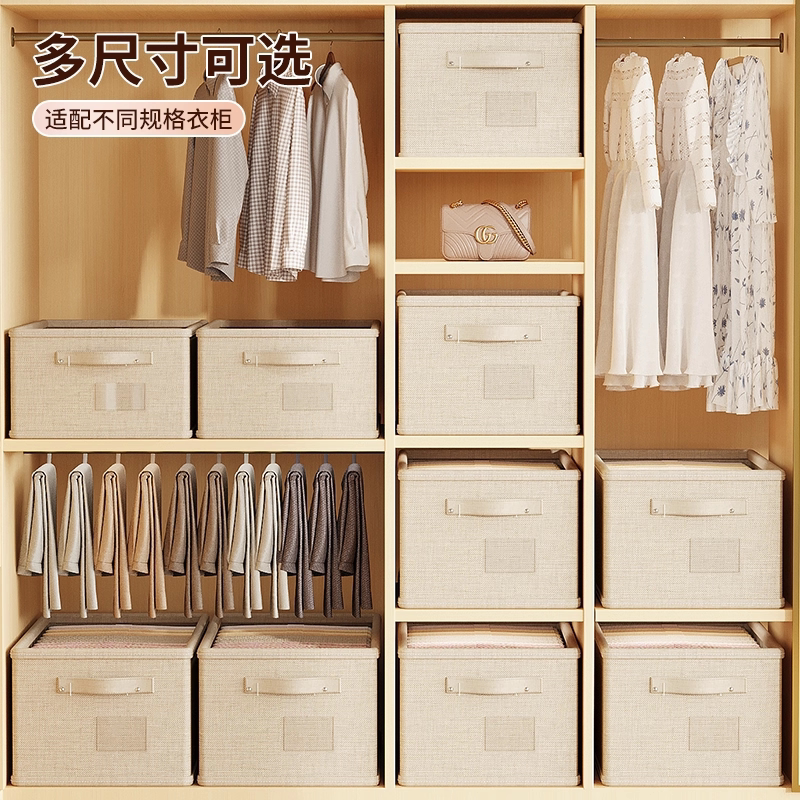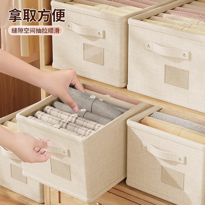 天山棉麻收纳筐衣柜收纳整理分层神器PP板可水洗衣服储物盒收纳箱