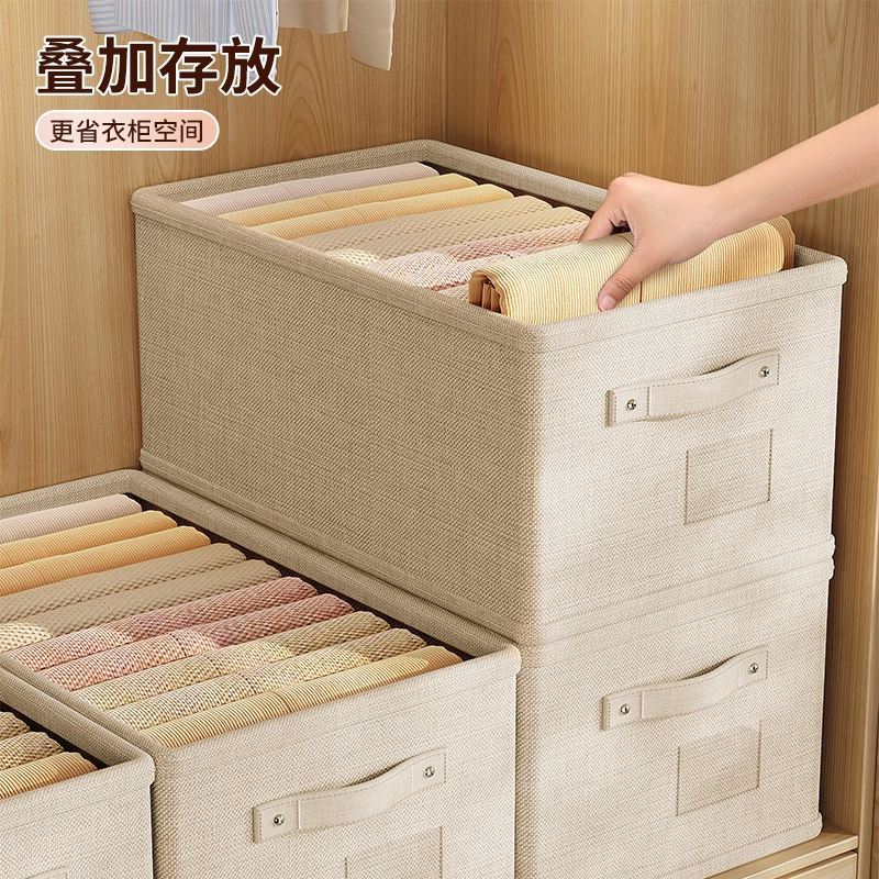 衣服收纳箱家用衣柜分层整理盒放衣物裤子布艺棉麻折叠储物筐玩具