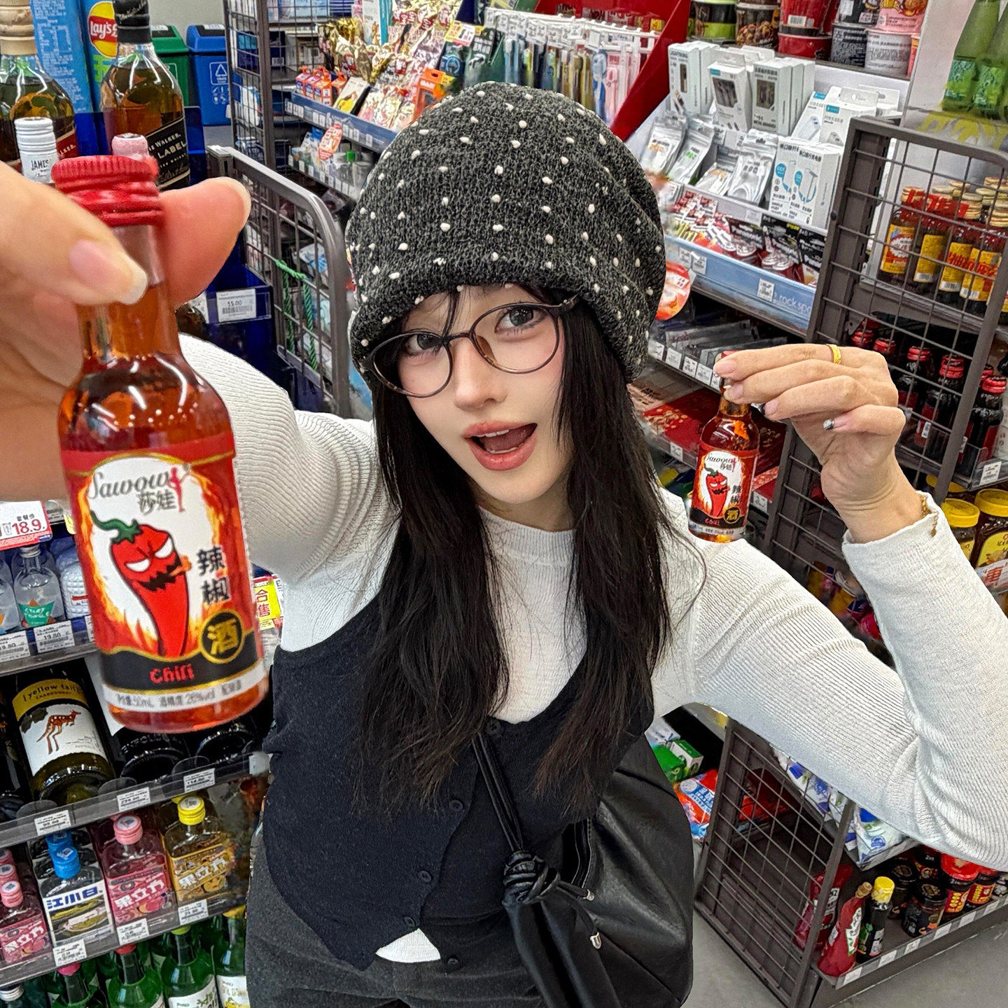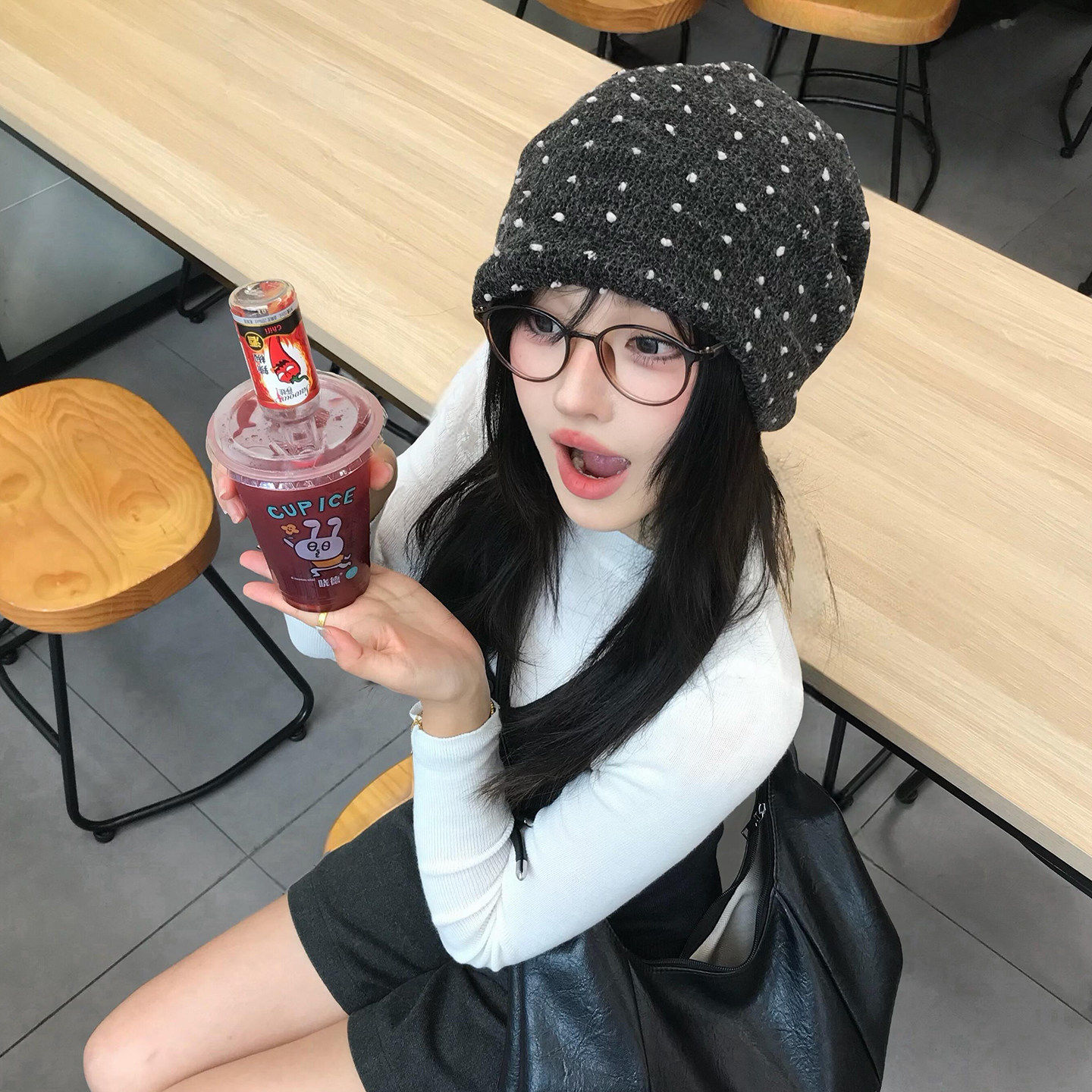2026新款韩系波点针织帽子女款时尚洋气冬大头显脸小护耳保暖冷帽